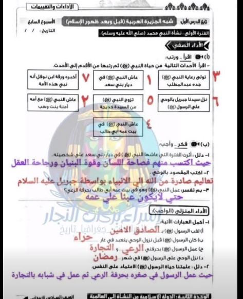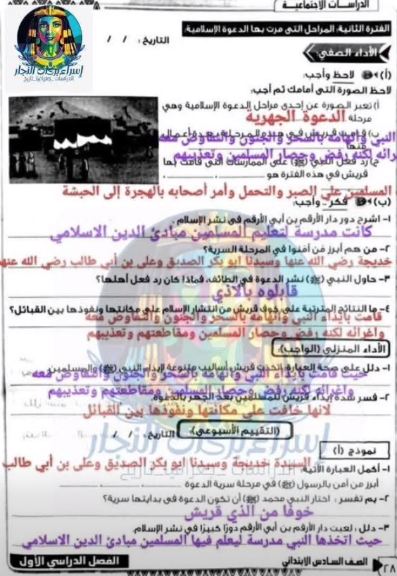 ويمكن الحصول على إجابة التقييم الأسبوعي والأداء الصفي والواجب السابع دراسات للصف السادس الابتدائي 2026 من خلال مطالعة الصور التالية: