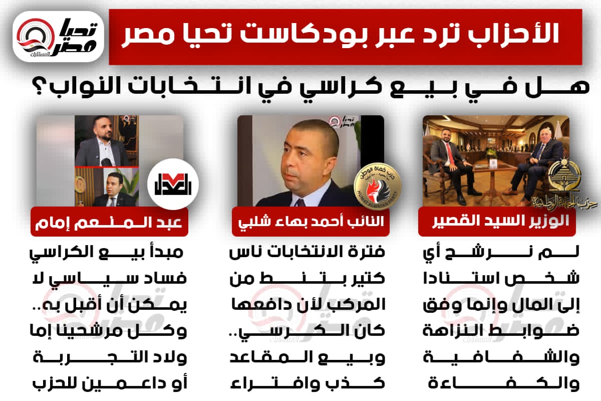 أما عبد المنعم إمام، رئيس حزب العدل، فشدد على أن مبدأ بيع الكراسي يمثل “فسادًا سياسيًا لا يمكن القبول به”، موضحًا أن جميع مرشحي الحزب إما من أبناء التجربة الحزبية أو من الداعمين الحقيقيين لها.