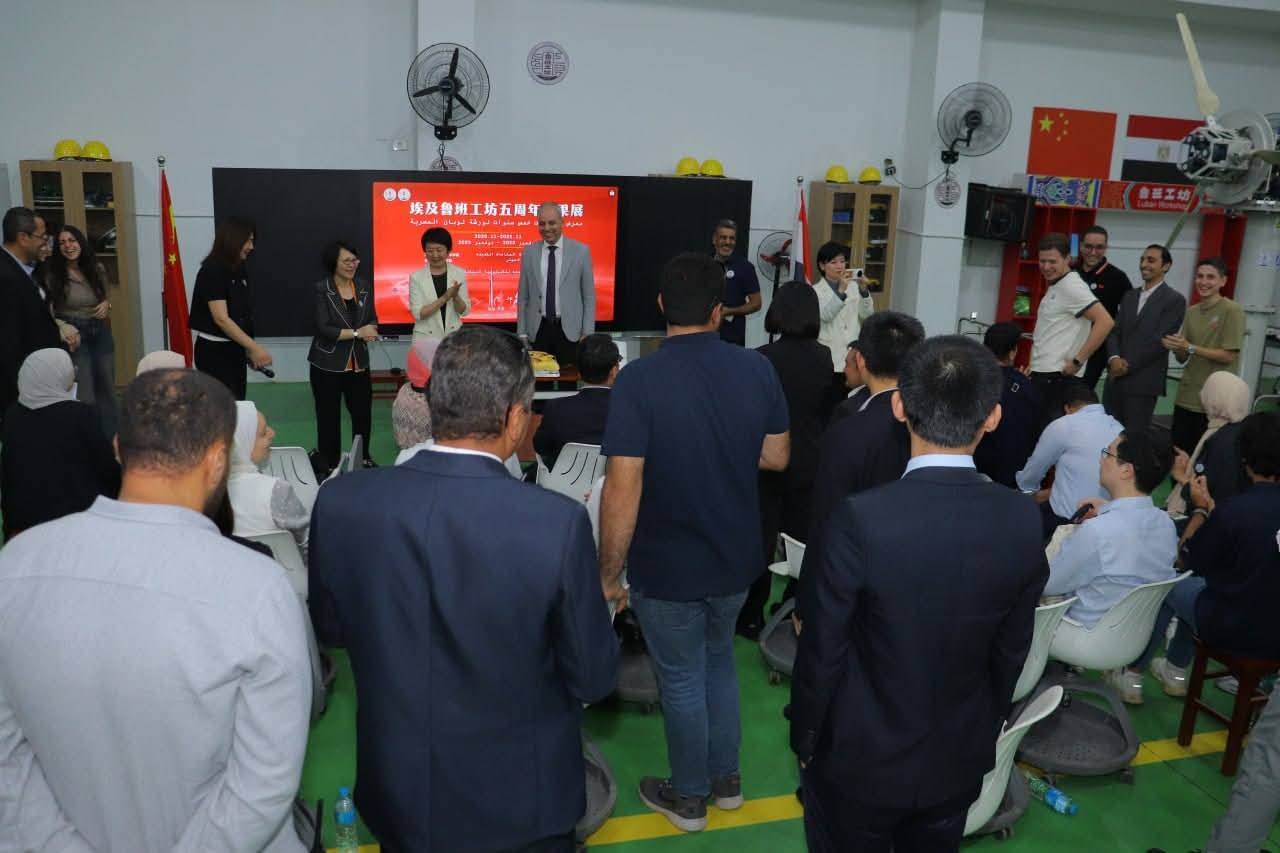 وتضمن الاحتفال تنظيم معرض لعرض إنجازات الورشة خلال السنوات الخمس الماضية، حيث تم استعراض نماذج من المنتجات التي تم تصنيعها داخل الورشة، إلى جانب التمارين العملية التي أُضيفت إلى المحتوى العلمي للمقررات الدراسية، فضلًا عن الدورات التدريبية المشتركة التي أُقيمت داخل الورشة بالتعاون مع الجانب الصيني، سواء في مصر أو بالصين.