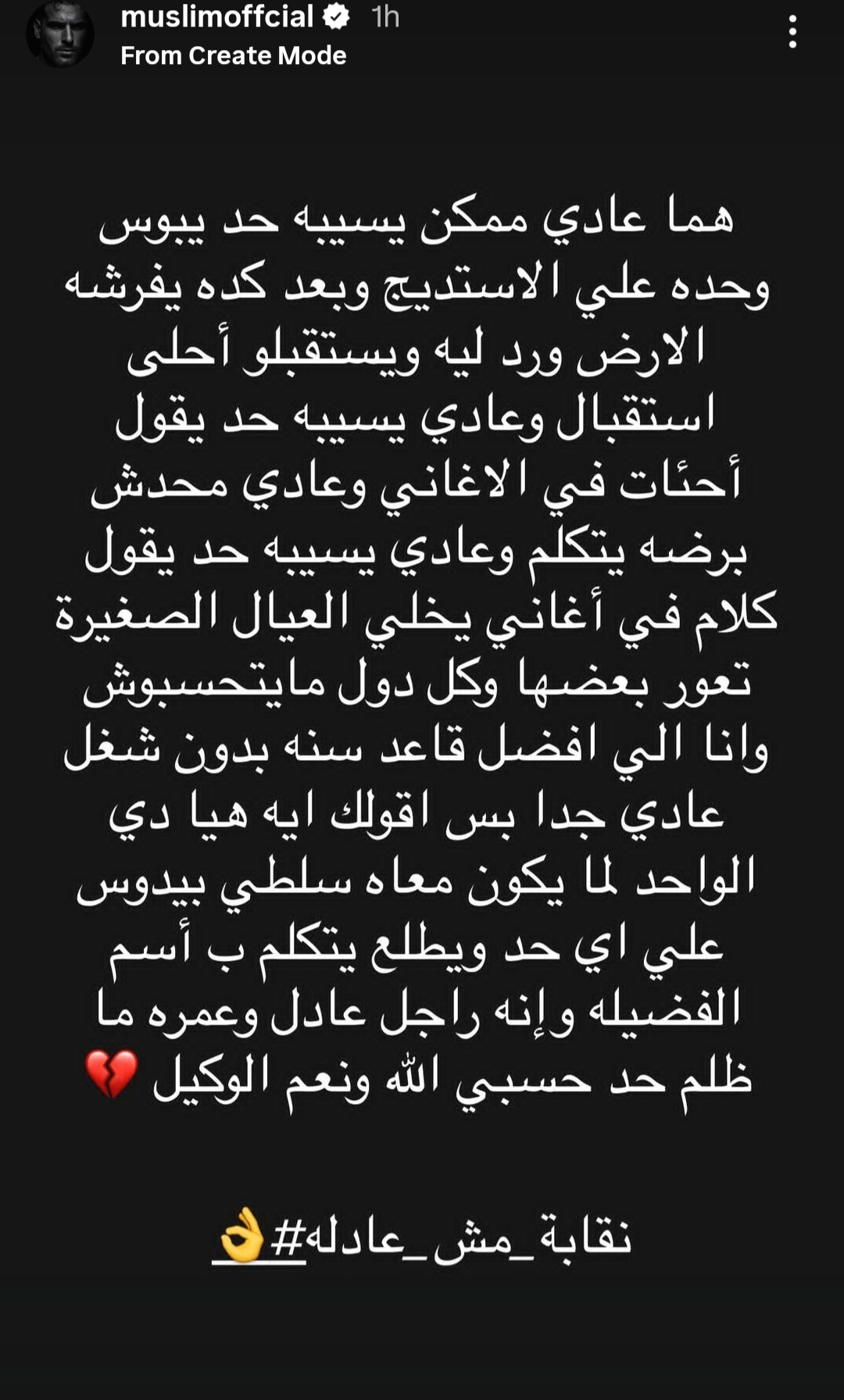وجه مطرب المهرجانات مسلم انتقادات حادة لنقابة المهن الموسيقية برئاسة الفنان مصطفى كامل، متهمًا إياها بعدم العدالة في التعامل مع أعضائها، وذلك عقب استمرار قرار منعه من الغناء لأكثر من عام دون توضيح الأسباب الكاملة وراء ذلك.