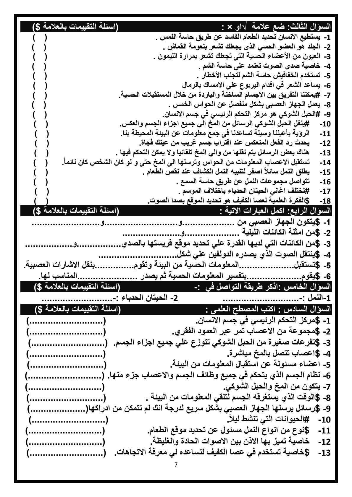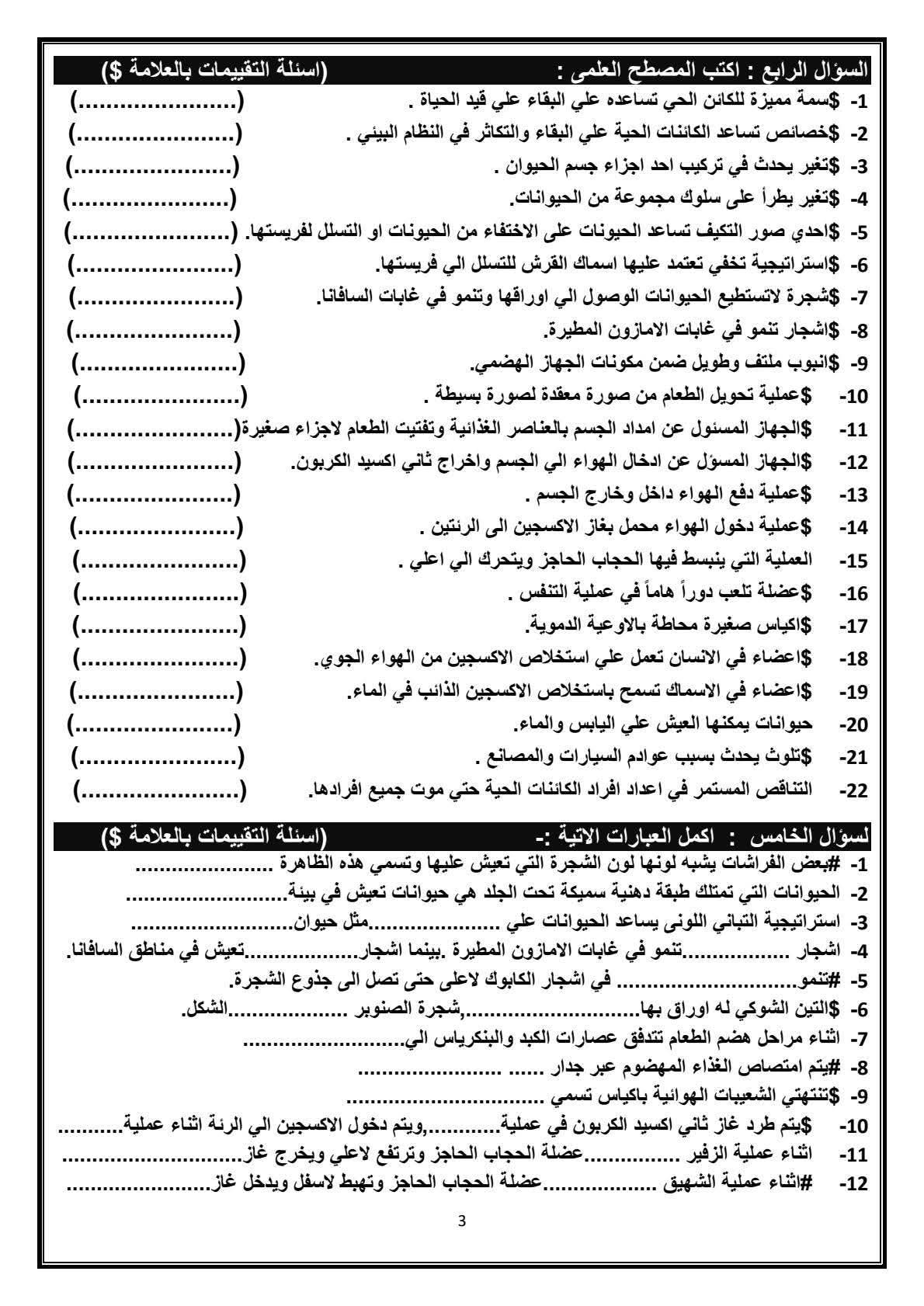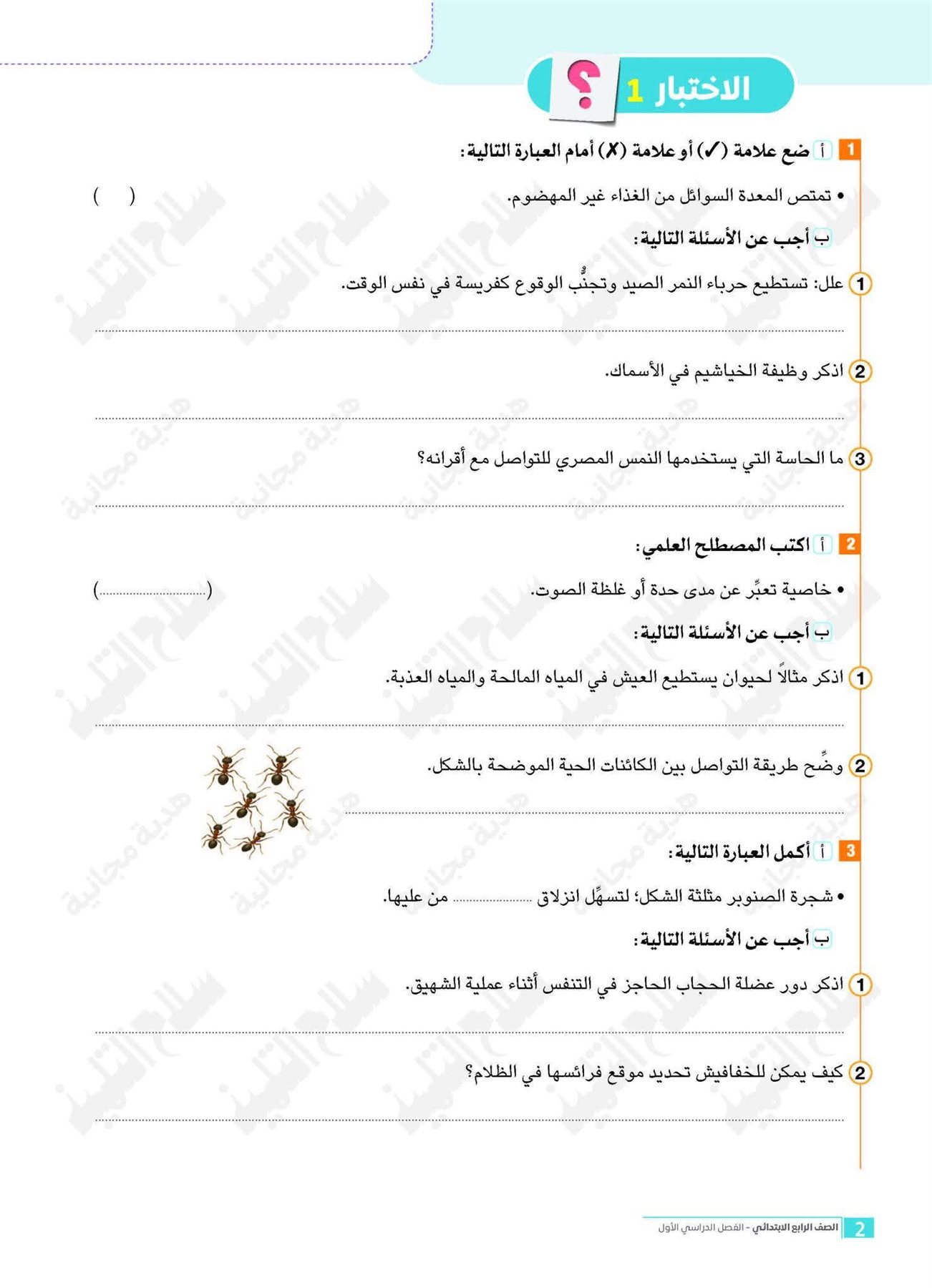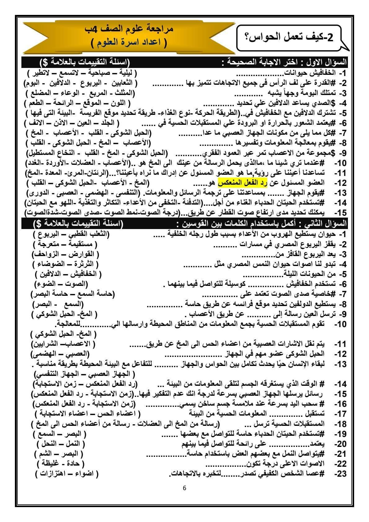 مراجعة شهر نوفمبر علوم للصف الرابع الابتدائي ترم أول 2025 2026