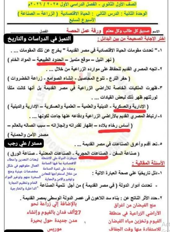يُنشر عبر موقع كشكول التعليمي ملحق شامل يحتوي على حل التقييم الأسبوعي والأداء الصفي والواجب السابع في مادة التاريخ للصف الأول الثانوي – الفصل الدراسي الأول 2026، وذلك في إطار حرص الموقع الدائم على مساعدة الطلاب في فهم الدروس ومتابعة خطة التقييم الجديدة وفق أحدث مواصفات الوزارة.