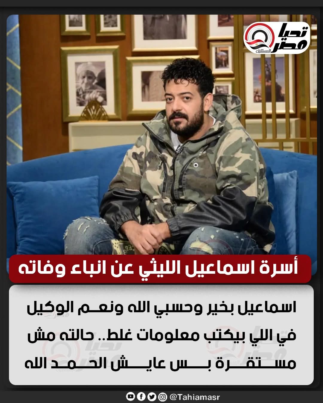 ونفت أسرة اسماعيل الليثي نبأ وفاته، حيث قالت: “اسماعيل بخير وحسبي الله ونعم الوكيل في اللي بكيتب معلومات غلط، حالته مش مستقرة بس عايش الحمدلله”.