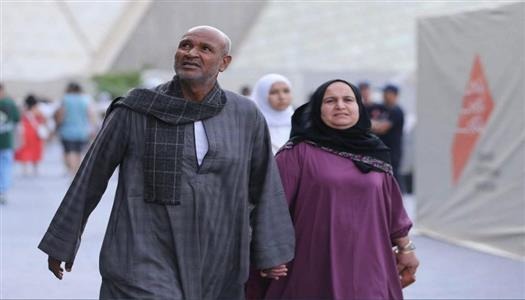 في لحظة عابرة داخل المتحف المصري الكبير، التقطت صورة لرجل صعيدي بسيط يرتدي الجلباب التقليدي ويمسك بيد زوجته أثناء خروجهم من قاعة العرض.