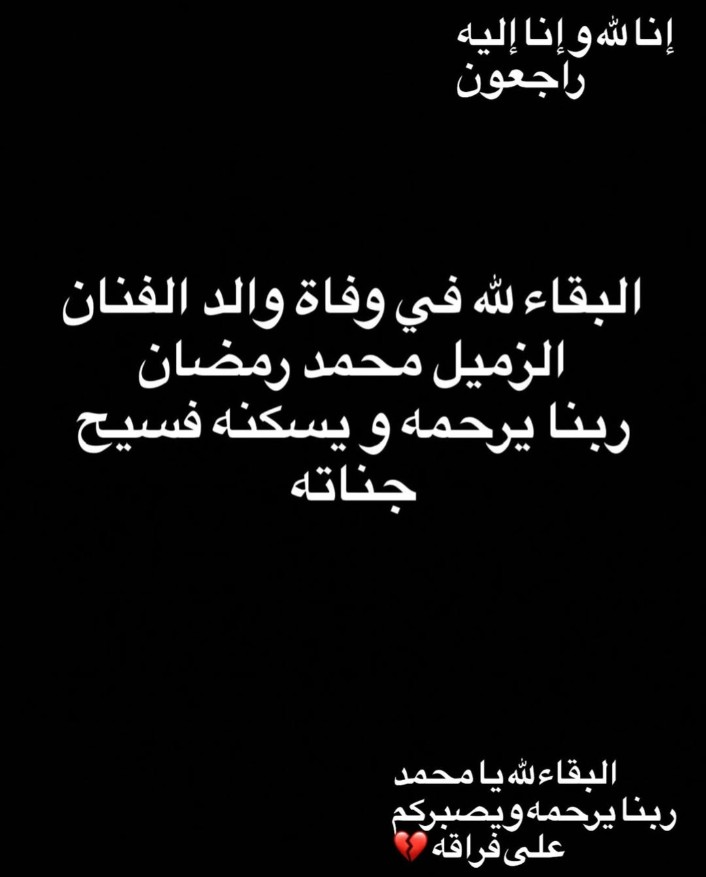 نعي دينا الشربيني والد كريم محمود عبد العزيز