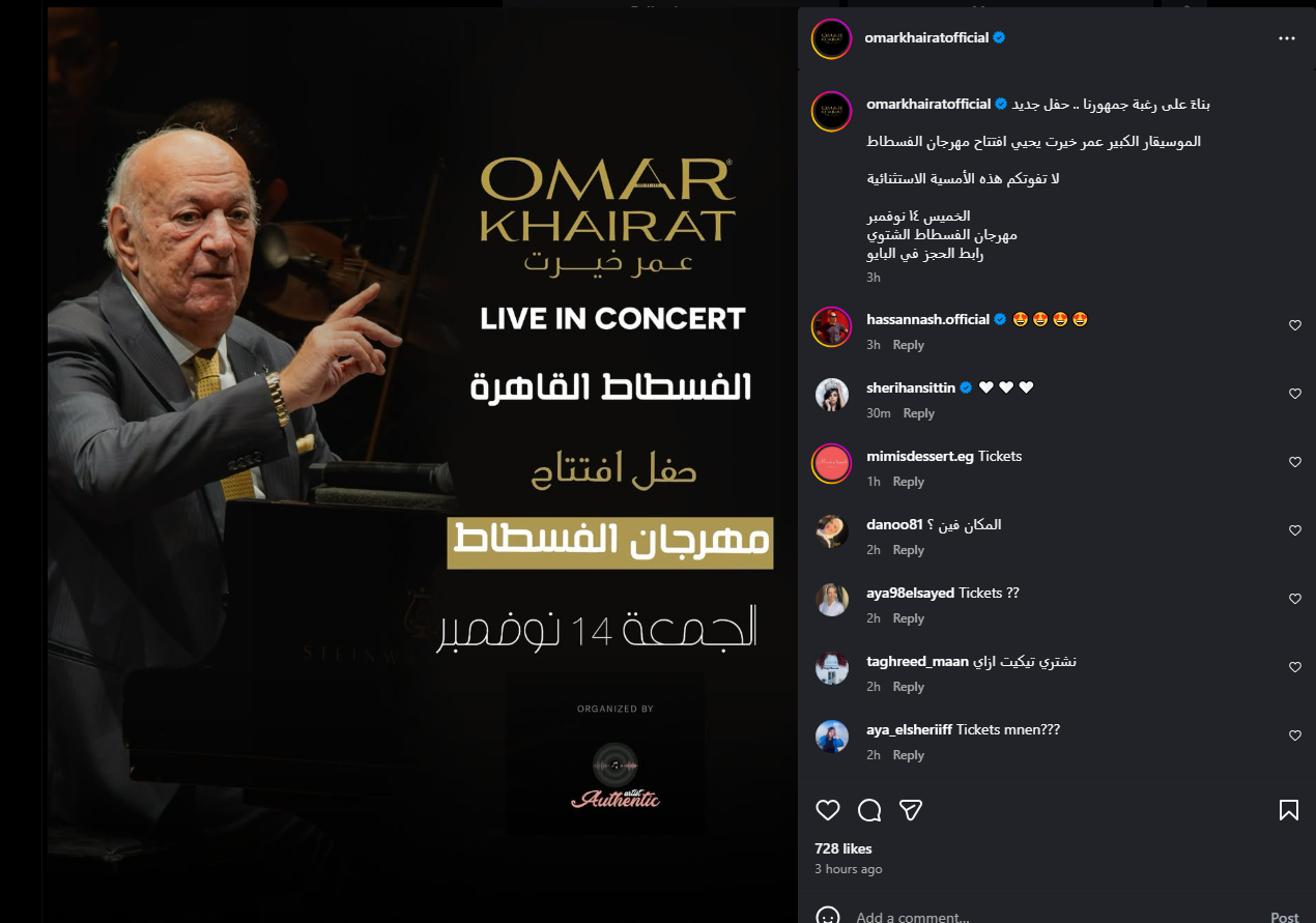 أسعار تذاكر حفل عمر خيرت في مهرجان الفسطاط