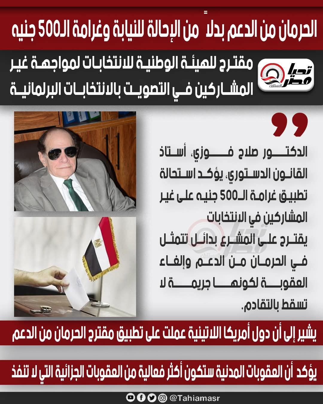 الحرمان من الدعم بديلاً عن الغرامة.. مقترح للهيئة الوطنية للانتخابات لمواجهة عدم المشاركة في الانتخابات البرلمانية