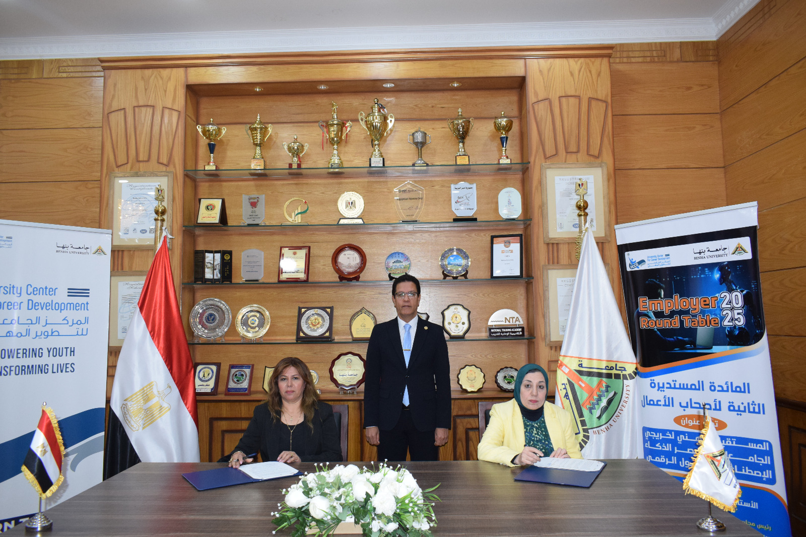 شهد الدكتور ناصر الجيزاوي رئيس جامعة بنها، حوار المائدة المستديرة الثانية لأصحاب الأعمال لمناقشة “المستقبل المهني لخريجي الجامعات في عصر الذكاء الاصطناعي والتحول الرقمي”، والتي نظمها مركز التطوير المهني بالجامعة.