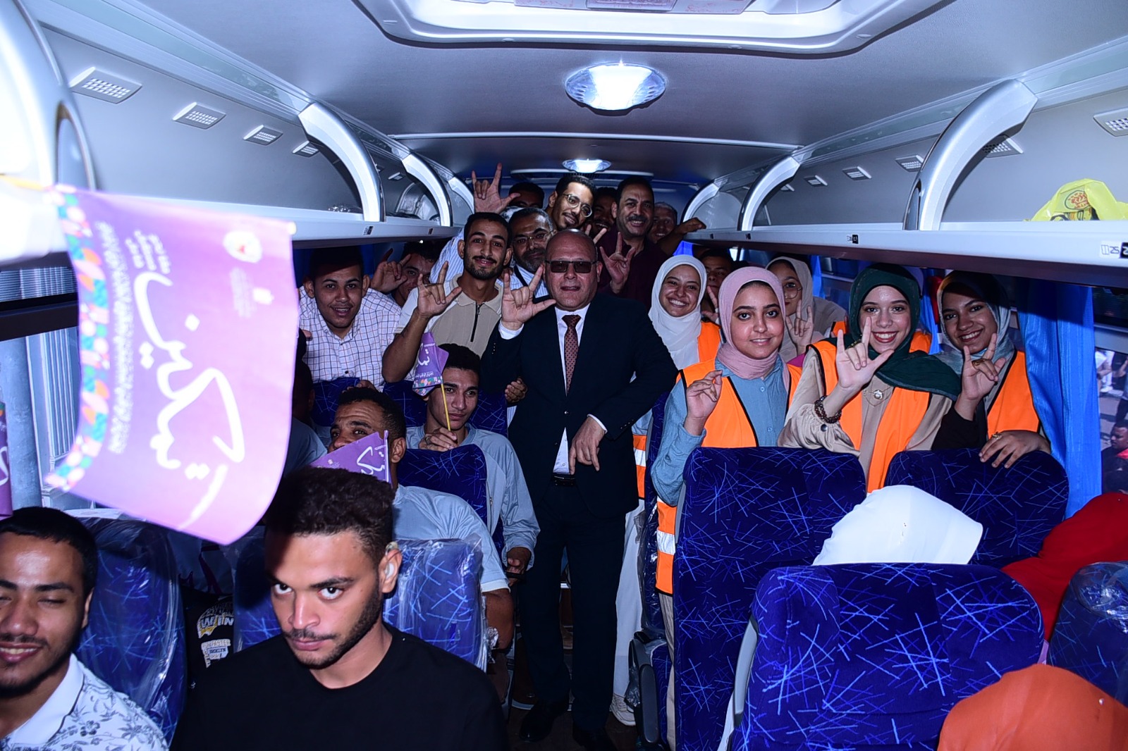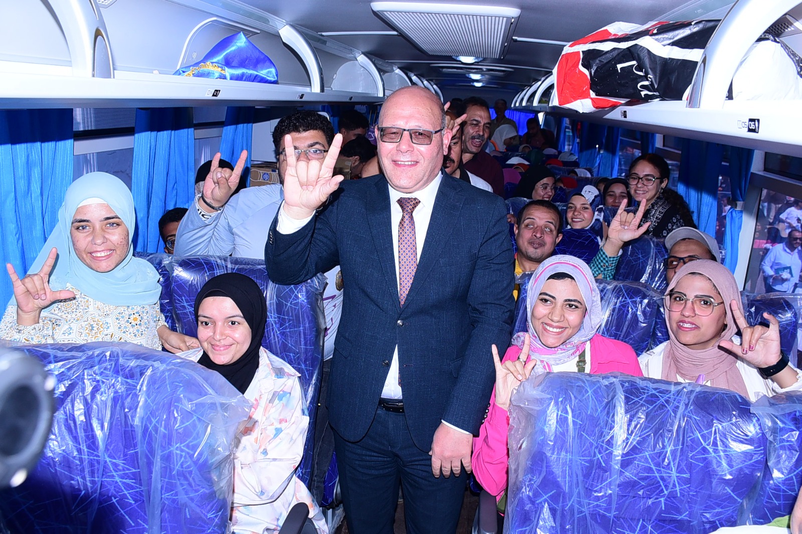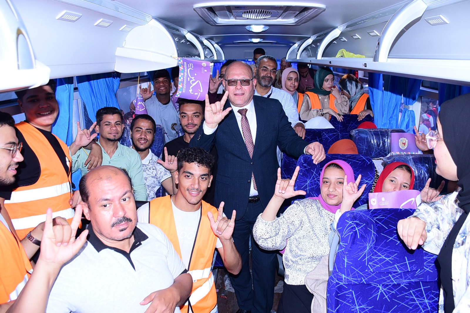 رئيس جامعة سوهاج وسط طلابه من ذوى الإعاقة بالأتوبيسات المخصصة لنقلهم للمقرات الانتخابية