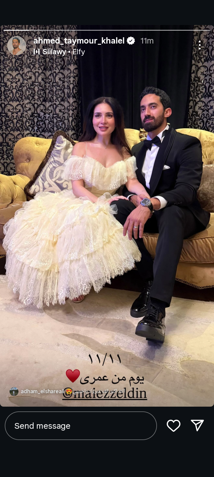 وكانت قد فاجأت مي عز الدين منذ قليل الجمهور بإعلان زواجها على الطبيب الصيدلي أحمد تيمور، حيث كتبت في منشور على حسابتها بمواقع التواصل الاجتماعي المختلفة: “الحمدلله الذي تتم بنعمته الصالحات، أتمني من الله التوفيق و دعواتكم لنا الصادقة و الطيبة بالخير”.
