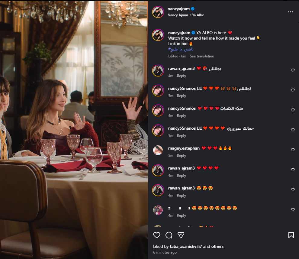 وكانت آخر اعمال الفنانة نانسي عجرم، هو ألبوم نانسي 11، الذي طرح خلال الفترة الماضية وحقق نجاحا كبيرا، عبر مواقع التواصل الاجتماعي ومنصات الموسيقي.