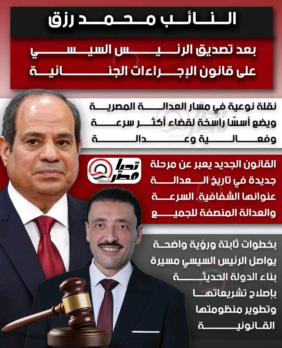النائب محمد رزق بعد تصديق الرئيس السيسي على قانون الإجراءات الجنائية