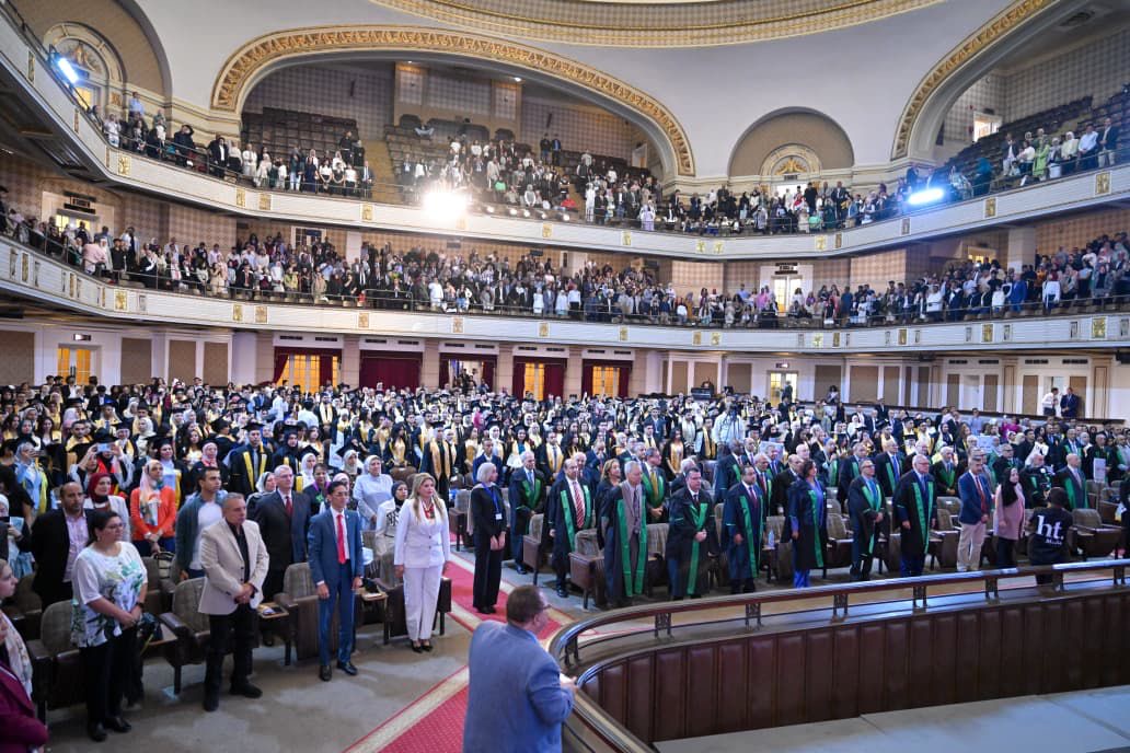 بدأت فعاليات الاحتفال بالتقاط الصورة الجماعية للخريجين أمام قبة الجامعة، ثم انتقل الحضور إلى قاعة الاحتفالات الكبرى حيث افتُتِح الحفل بعزف السلام الجمهوري وتلاوة آيات من القرآن الكريم.
