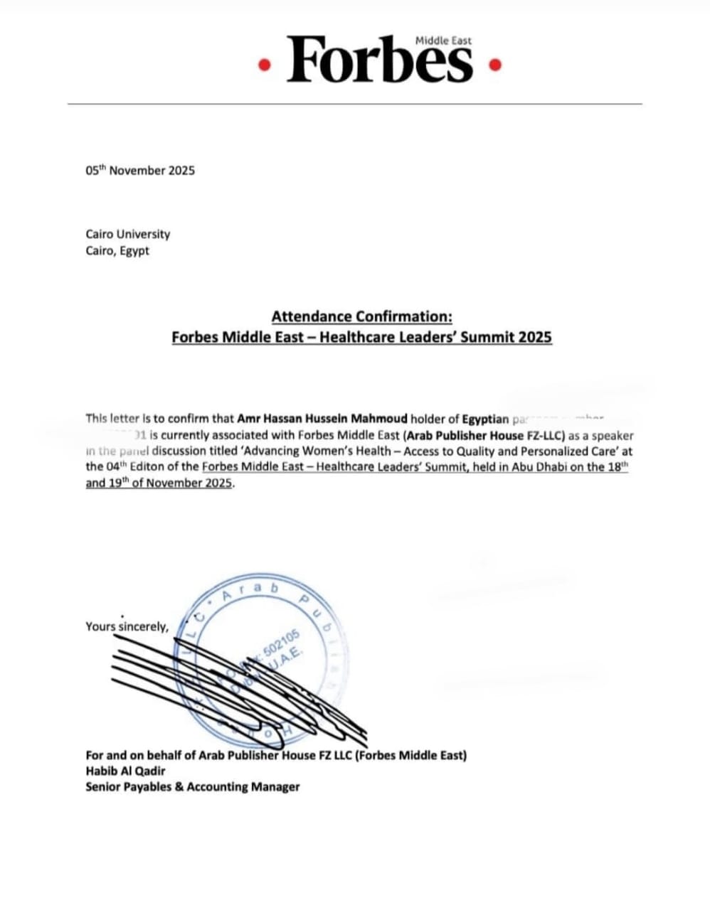 أستاذ بطب قصر العيني يشارك في قمة Forbes Middle East لقادة الرعاية الصحية بأبوظبي