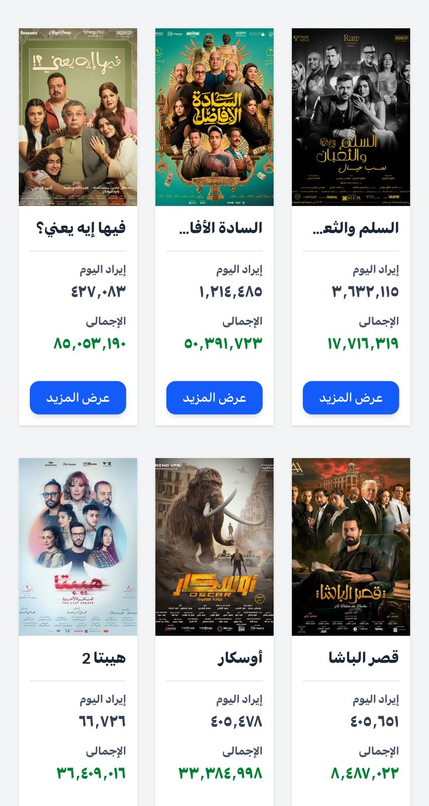 وتعكس هذه الأرقام التفاوت الواضح في قدرة كل فيلم على جذب الجمهور، بينما يظل السلم والثعبان 2 الأكثر حضورًا على الساحة حتى الآن، وقد أسهم الحضور الفني المميز في الفيلم في دفعه إلى القمة حيث يشارك في بطولته الفنان عمرو يوسف إلى جانب مجموعة كبيرة من النجوم، بينهم أسماء جلال وظافر العابدين وماجد المصري وحاتم صلاح وفدوى عابد، إضافة إلى ظهور خاص للفنانة الكبيرة سوسن بدر، ويقوم بتأليف الفيلم الكاتب أحمد حسني، بينما يجتمع في إنتاجه عدد من الأسماء البارزة في مجال السينما، وهم طارق العريان وموسى عيسى ومحمد رشيدي وهشام عبد الخالق، ويتولى الإخراج المخرج طارق العريان.