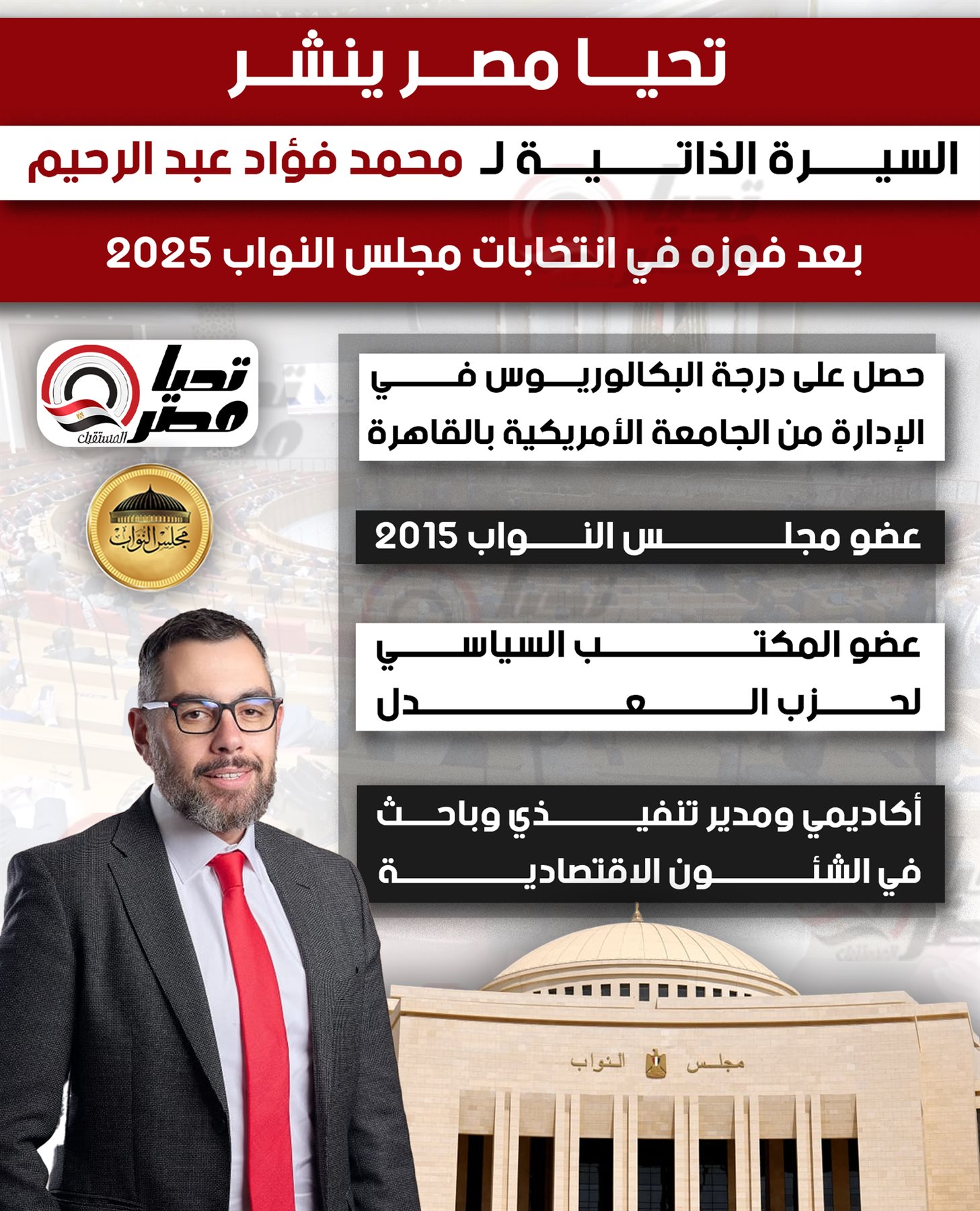 تحيا مصر ينشر السيرة الذاتية لـ محمد فؤاد عبد الرحيم بعد فوزه في انتخابات مجلس النواب 2025