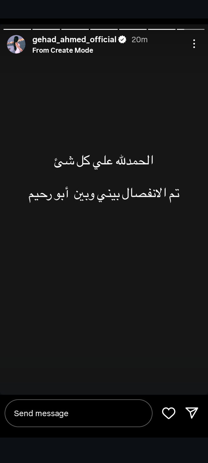وكانت قد كتبت جهاد قبل ساعات من طلاقها من عصام صاصا: طيب نقطة عشان أقفّل وأشاعات أنا شخصيتي كده وهتفضل كده أنا ممكن أتعامل مع شخص وهو فيه عيوب الدنيا وميفرقليش هو وحش ولا حلو بس لما بقفل منه بيتشطب من حياتي ومش بيرجع تاني من الآخر بيبقى هو بالنسبة لي عيني مش بتشوفه مهما كانت غلاوته كبيرة عندي اتقفلت منه يعني أتمسح من حياتي دي أنا وده اللي يريحني أنا فا محدش يضايقها حاجة أنا مختارها في حياتي أنا.