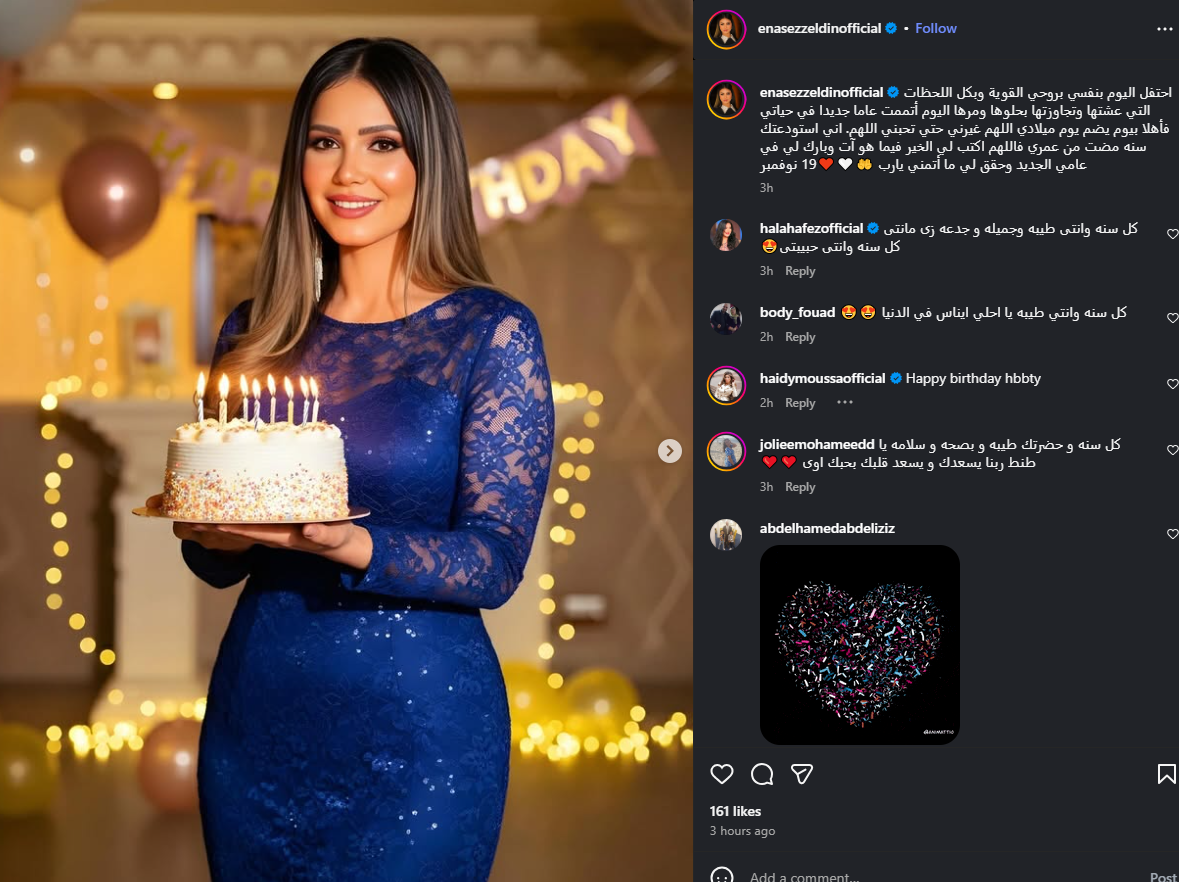 اللهم بارك لي في عامي الجديد.. إيناس عز الدين تحتفل بعيد ميلادها