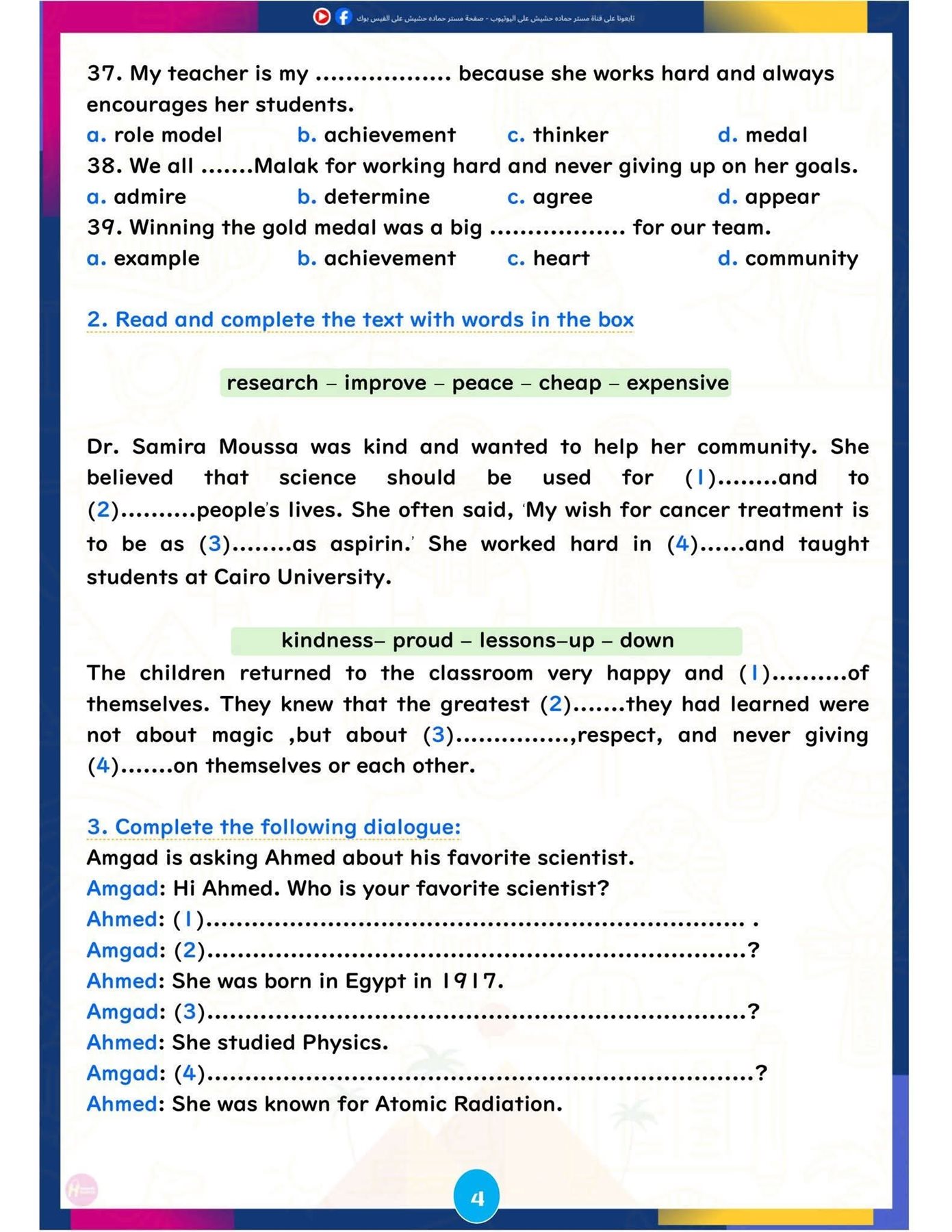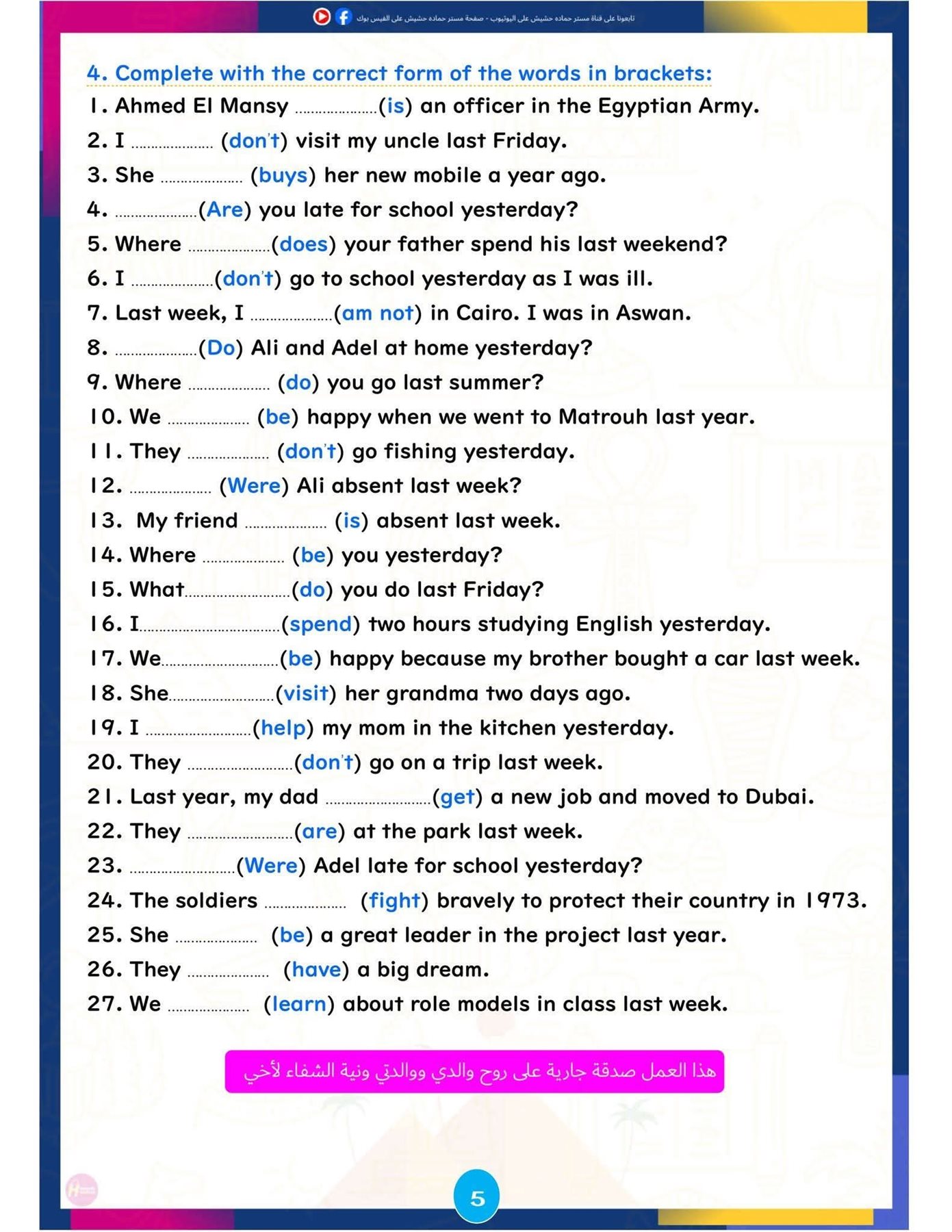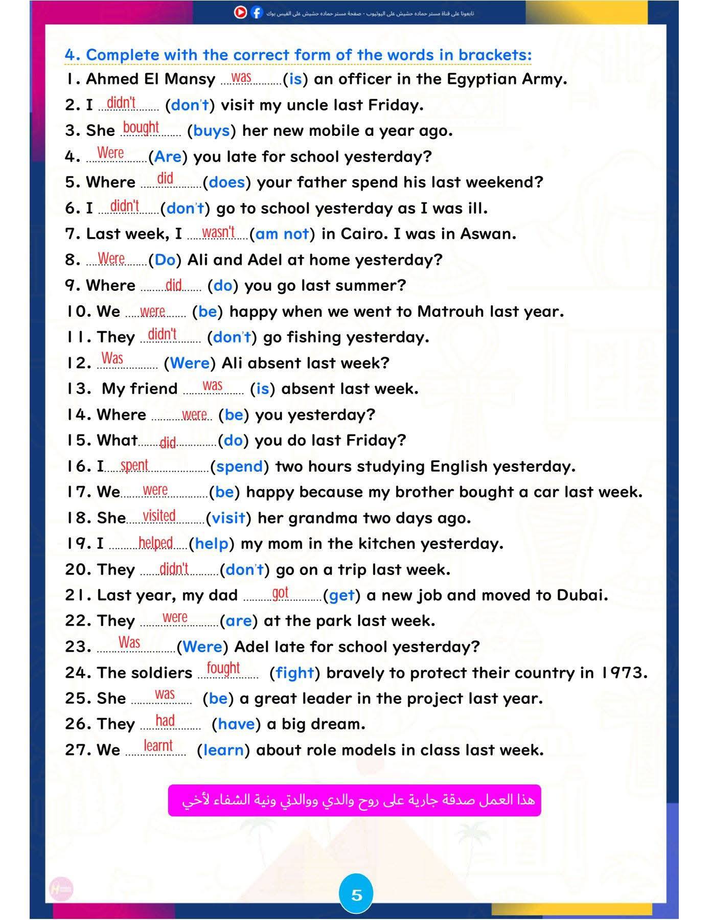 وتركزت المراجعة على تبسيط النقاط اللغوية الأساسية، وإتاحة تدريبات تطبيقية تساعد الطلاب على تحسين مهارات القراءة والكتابة والاستعداد للاختبارات المقبلة، ننشرها كالتالي: