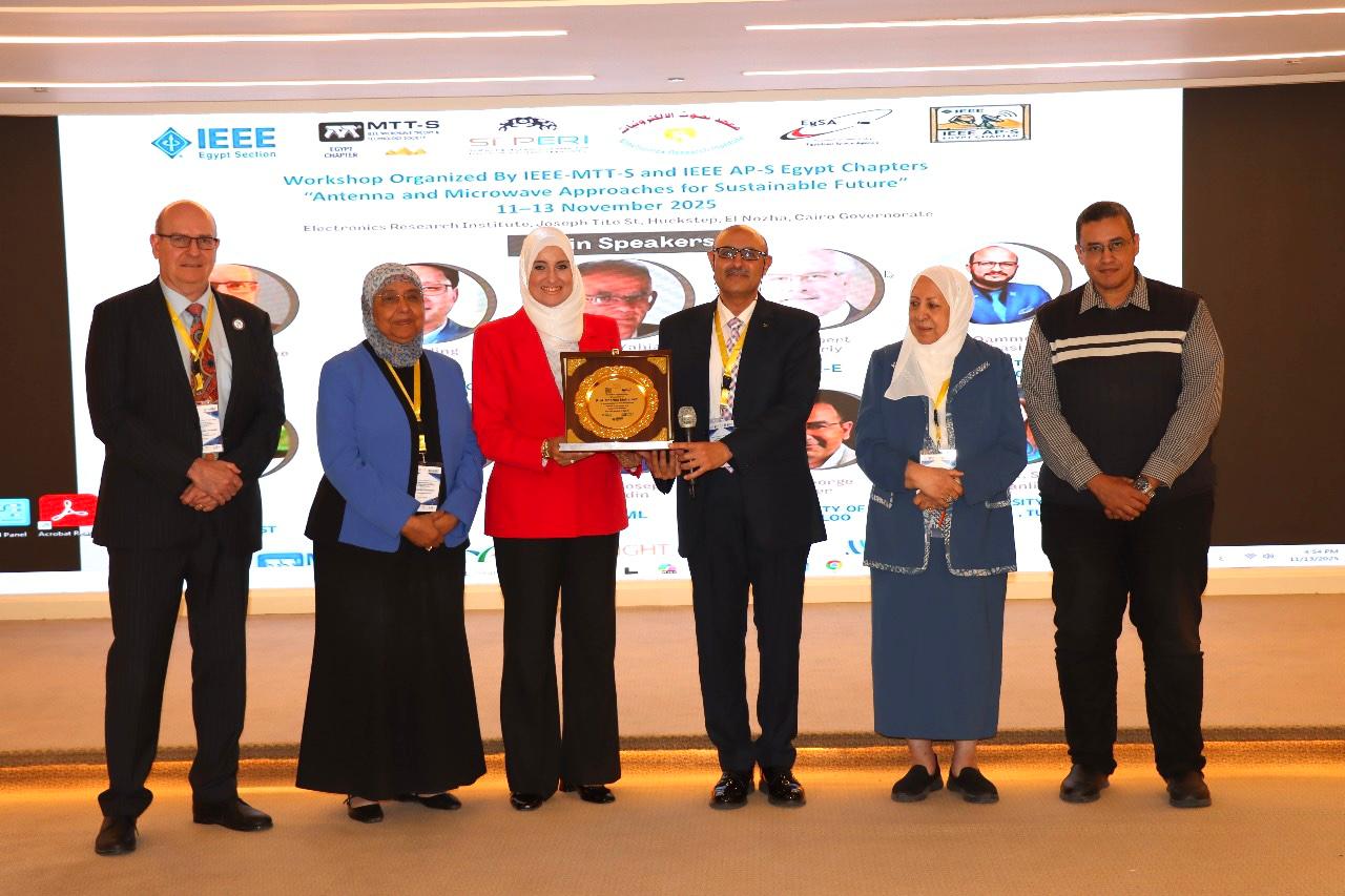 وفي ختام أعمال الورشة، قامت الدكتورة شيرين عبدالقادر محرم رئيس معهد بحوث الإلكترونيات، ود.أحمد مدين رئيس فرع الجمعية الدولية لمهندسي الكهرباء بمصر، بتوزيع الجوائز وشهادات التقدير على الفائزين والفريق المنظم، بحضور رؤساء اللجنة المنظمة وباقي ضيوف الشرف، وجاء هذا الختام وسط إشادة واسعة من الحضور بالمستوى التنظيمي والعلمي المتميز للورشة، والدعم غير المسبوق من فرعي IEEE AP-S وIEEE MTT-S، والدور الريادي لمعهد بحوث الإلكترونيات في تعزيز البحث العلمي وتطوير تقنيات الميكروويف والهوائيات في مصر والعالم العربي.