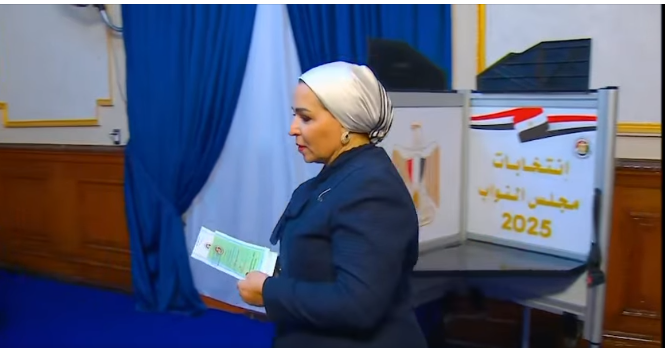 السيدة انتصار السيسي تدلي بصوتها في انتخابات مجلس النواب