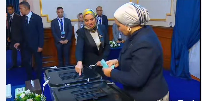 السيدة انتصار السيسي تدلي بصوتها في الانتخابات