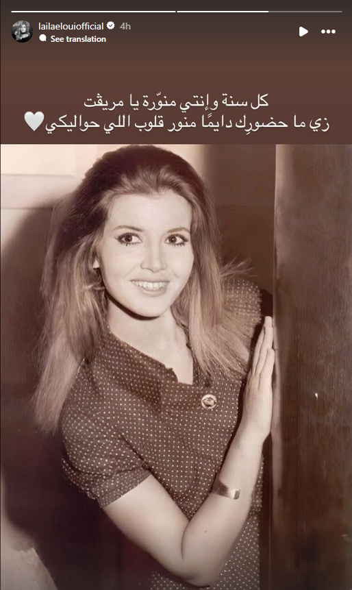 حرصت الفنانة ليلى علوي، على تهنئة الفنانة ميرفت أمين، بمناسبة عيد ميلادها من خلال كلمات مليئة بالحب، وذلك عب رموقع التواصل الاجتماعي إنستجرام.