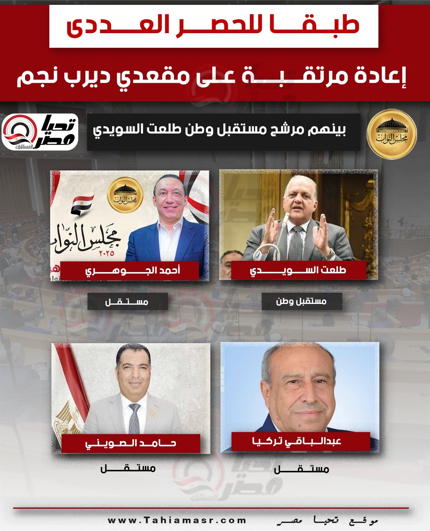 جولة إعادة مفصلية.. ومنافسة ثلاثة مستقلين مع مرشح حزب مستقبل وطن على حجزين مقعدين الدائرة