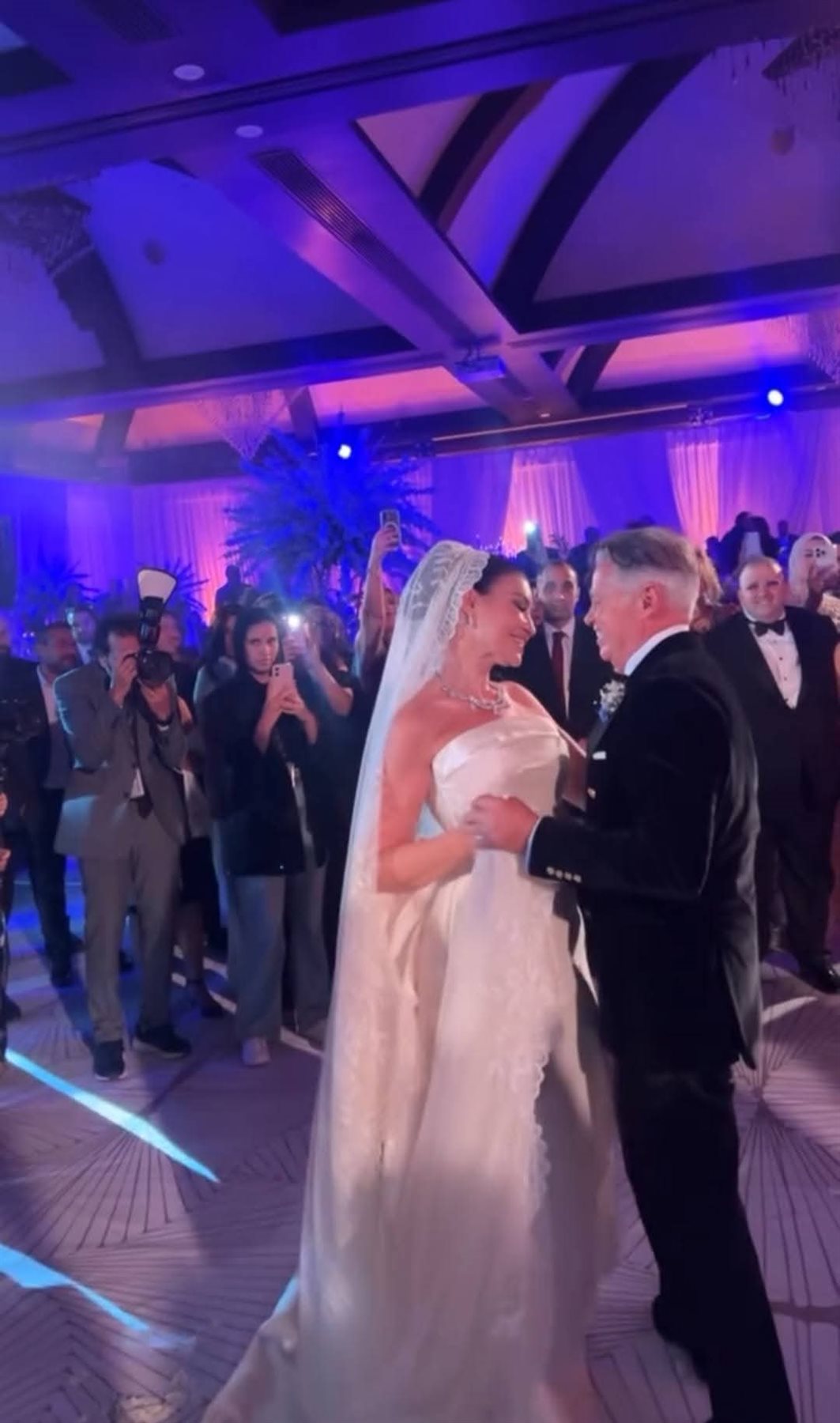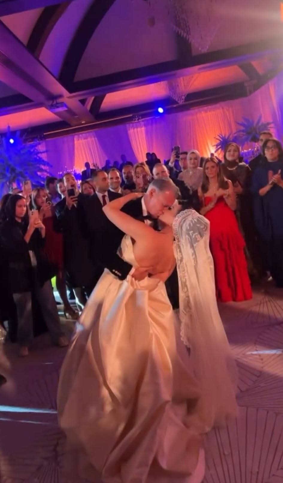 وظهرت الفنانة أروى جودة، في حفل زفافها على رجل الأعمال الايطالي، بفستان عرس أبيض بسيط كاب من الستان، وحرصت على وضع طرحة العروس على رأسها مع ارتداء كوليه يتناسب مع اطلالاتها، ليس هذا فقط بل وضعت بعض لمسات المكياج الهادئة، ودخلت دخلة العروس المصري الأصيلة، على الزفة البلدي.