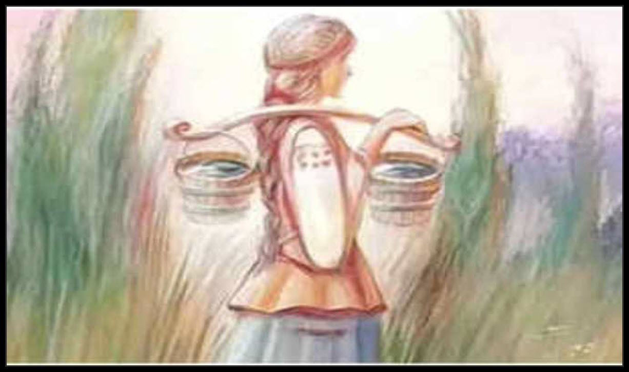 إن رأيت في الصورة امرأة تحمل على أكتافها عصاة يتدلى منها دلوان بهما ماء فإنك تتميز بأنك شخص عاطفي، وتتعاطف مع الآخرين بسهولة وتميل إلى العلاقات العاطفية أكثر من المنطق وتميل إلى الاستسلام للعواطف وتهتم بما يشعر به الأفراد الآخرون، ويتسم هؤلاء الأشخاص بأنهم يتغاضون عن أخطاء الآخرين ويسمحون لمشاعرهم أن تطغى على أحكامهم كما أنهم يتغاضون عن الأخطاء المتكررة وهو ما يؤثر في أحكامهم على الأمور وغالباً هذا يؤدي إلى الأذى.