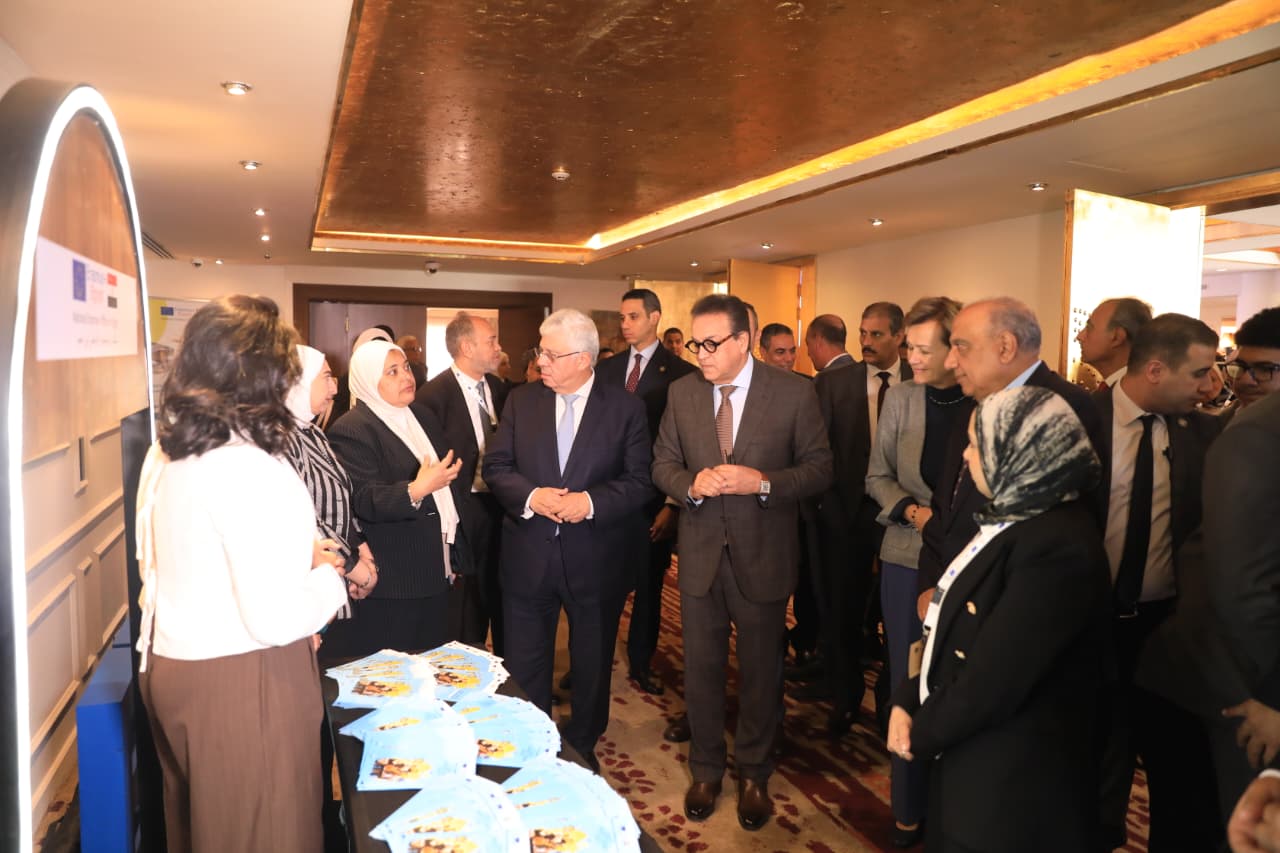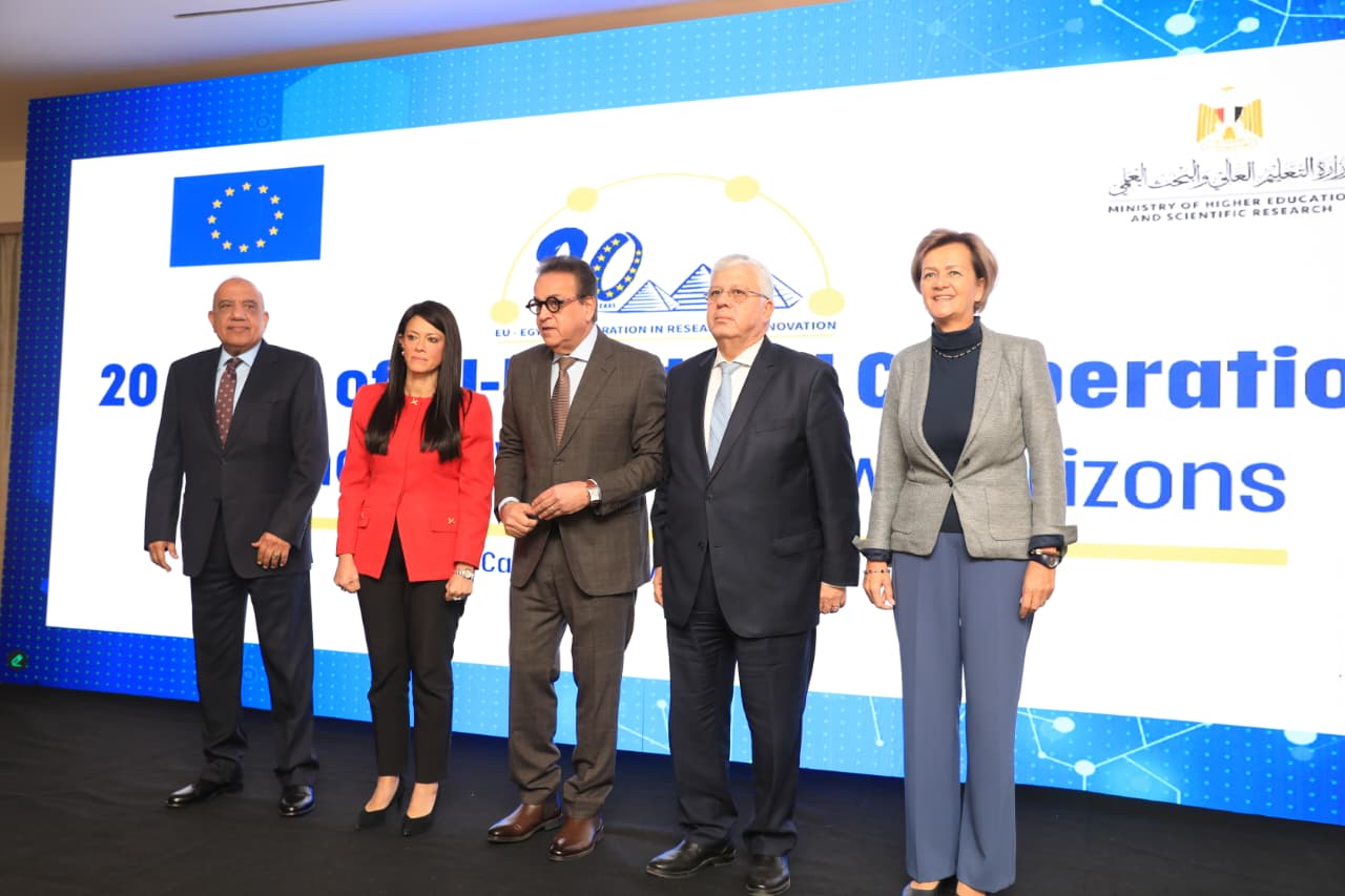 أطلقت وزارة التعليم العالي والبحث العلمي بالتعاون مع بعثة الاتحاد الأوروبي في مصر، فعاليات “أسبوع البحث والابتكار بين مصر والاتحاد الأوروبي، بحضور الدكتور خالد عبدالغفار نائب رئيس الوزراء للتنمية البشرية وزير الصحة والسكان، والدكتور أيمن عاشور وزير التعليم العالي والبحث العلمي، والدكتورة رانيا المشاط وزيرة التخطيط والتنمية الاقتصادية والتعاون الدولي، والدكتور محمود عصمت وزير الكهرباء والطاقة المتجددة، والسفيرة أنجلينا إيخهورست رئيسة وفد الاتحاد الأوروبي لدى مصر، بجانب مشاركة واسعة لنخبة من كبار المسؤولين والخبراء والأكاديميين من الجانبين المصري والأوروبي ورؤساء الجامعات وقيادات الوزارة.