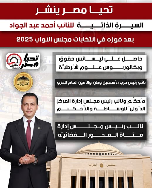 تحيا مصر ينشر السيرة الذاتي للنائب أحمد عبد الجواد بعد فوزه في انتخابات مجلس النواب 2025