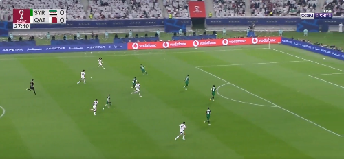 وفي الدقيقة 28 منعت العارضة همام الأمين من تسجيل الهدف الأول لمنتخب قطر بعد الانفراد بالمرمى.