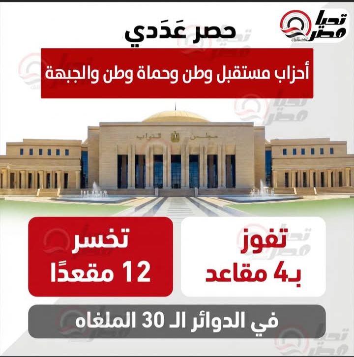 كشفت حصيلة فرز النتائج الأولية في 30 دائرة أعيدت فيها الانتخابات ضمن المرحلة الأولى لانتخابات مجلس النواب، أن أحزاب مستقبل وطن وحماة وطن والجبهة الوطنية لم تتمكن سوى من الفوز بـ4 مقاعد فقط، مقابل خسارة 12 مقعدا في الدوائر محل الإعادة.