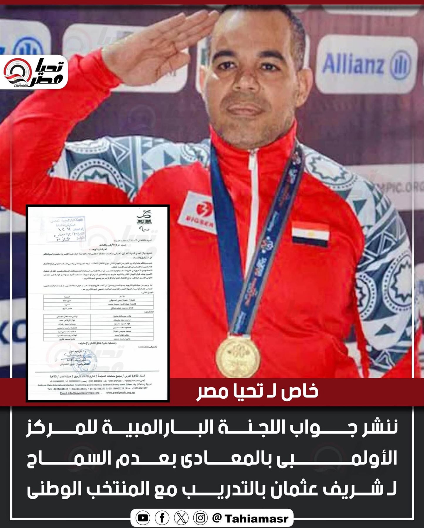 “تحيا مصر” ينفرد بخطاب البارالمبية بمنع البطل شريف عثمان من التدريب