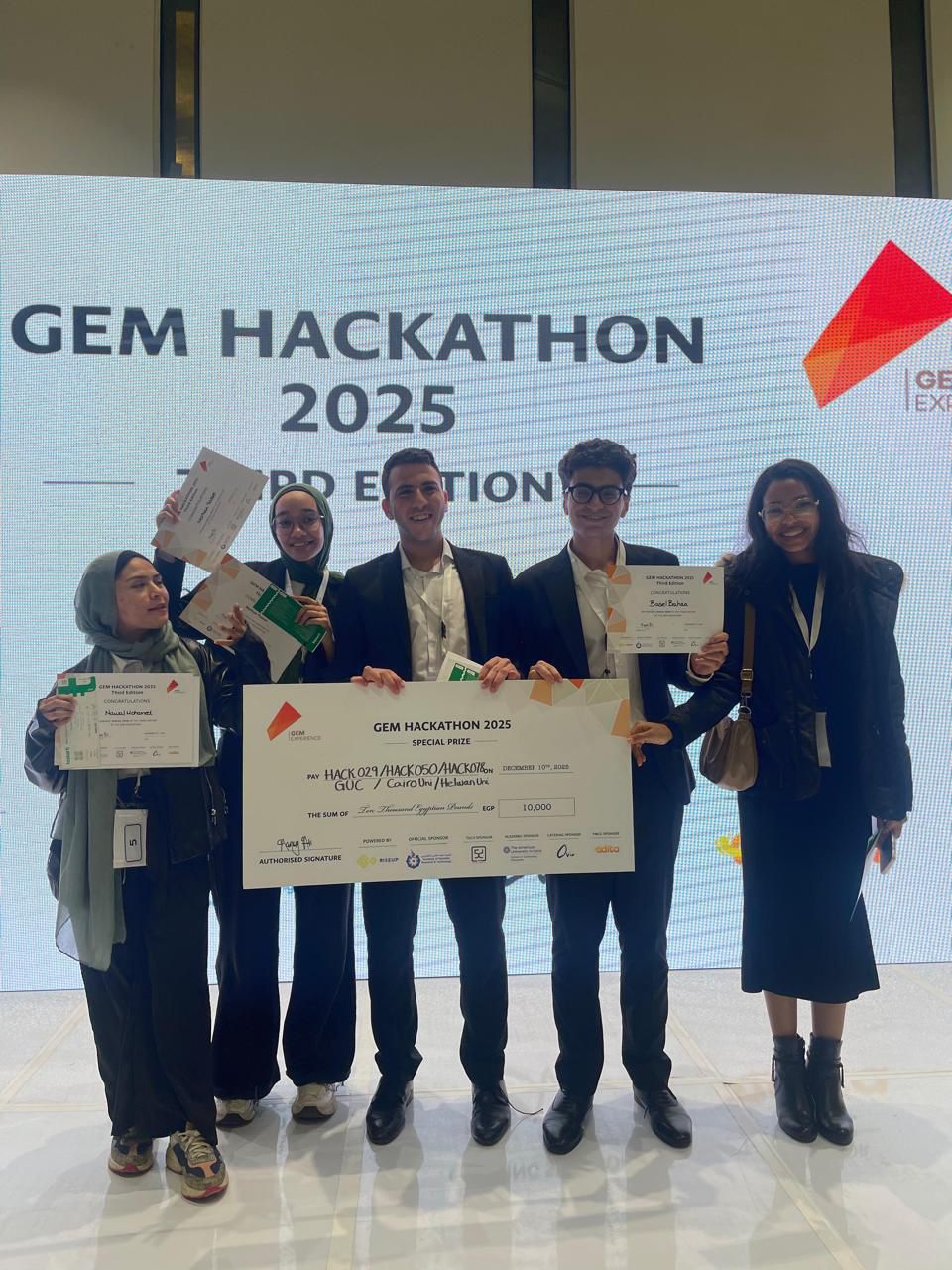 وقد فاز بالمركز الأول فريق مكوَّن من الطالبين رفيق إيهاب ونورهان ندى من برنامج هندسة الحاسبات والاتصالات بكلية الهندسة جامعة القاهرة، فيما حصل على المركز الرابع فريق مكوَّن من الطالبين باسل بهاء ويحيى زكريا من برنامج هندسة بيانات الرعاية الطبية والصحية بكلية الهندسة جامعة القاهرة.