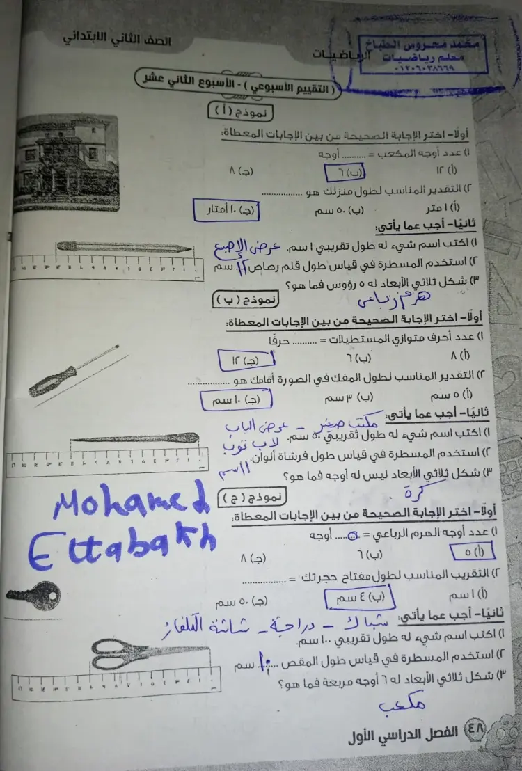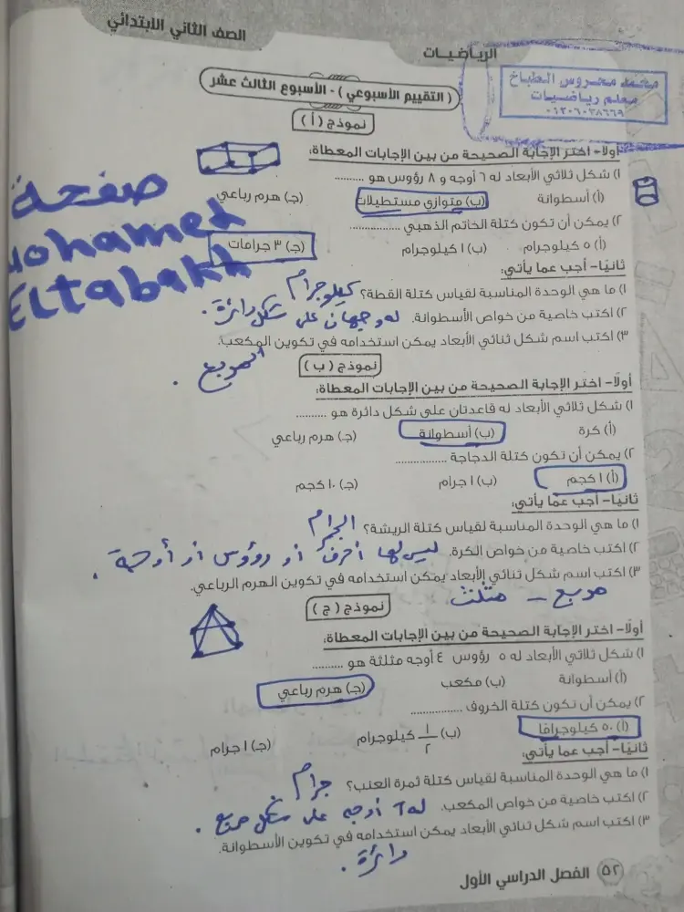 يتكون حل التقييم الأسبوعي رياضيات ثانية ابتدائي الأسبوع الثالث عشر ترم أول 2026 من مجموعة من الأسئلة والإجابات، والتي منها الآتي:
