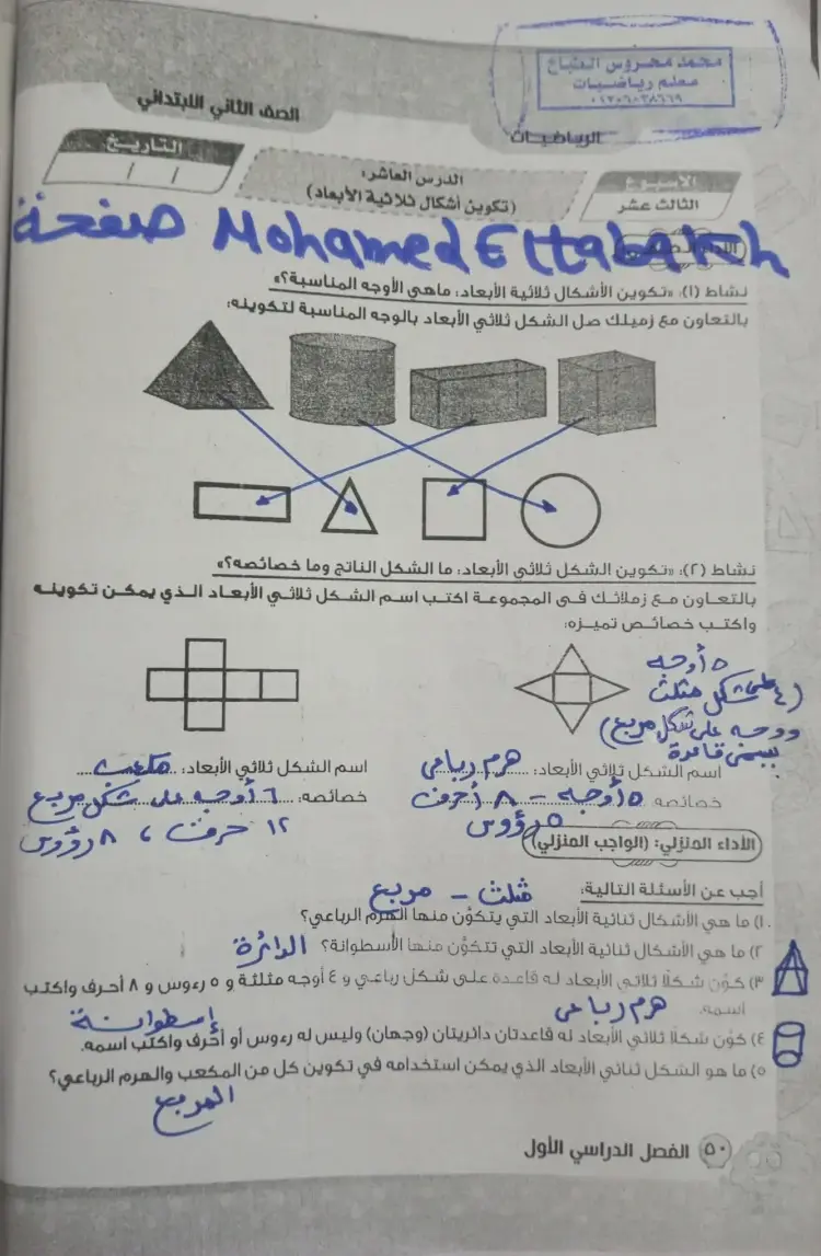 ويتكون حل الواجب المنزلي رياضيات ثانية ابتدائي الأسبوع الثالث عشر ترم أول 2026 من مجموعة من الأسئلة والإجابات، والتي منها الآتي: