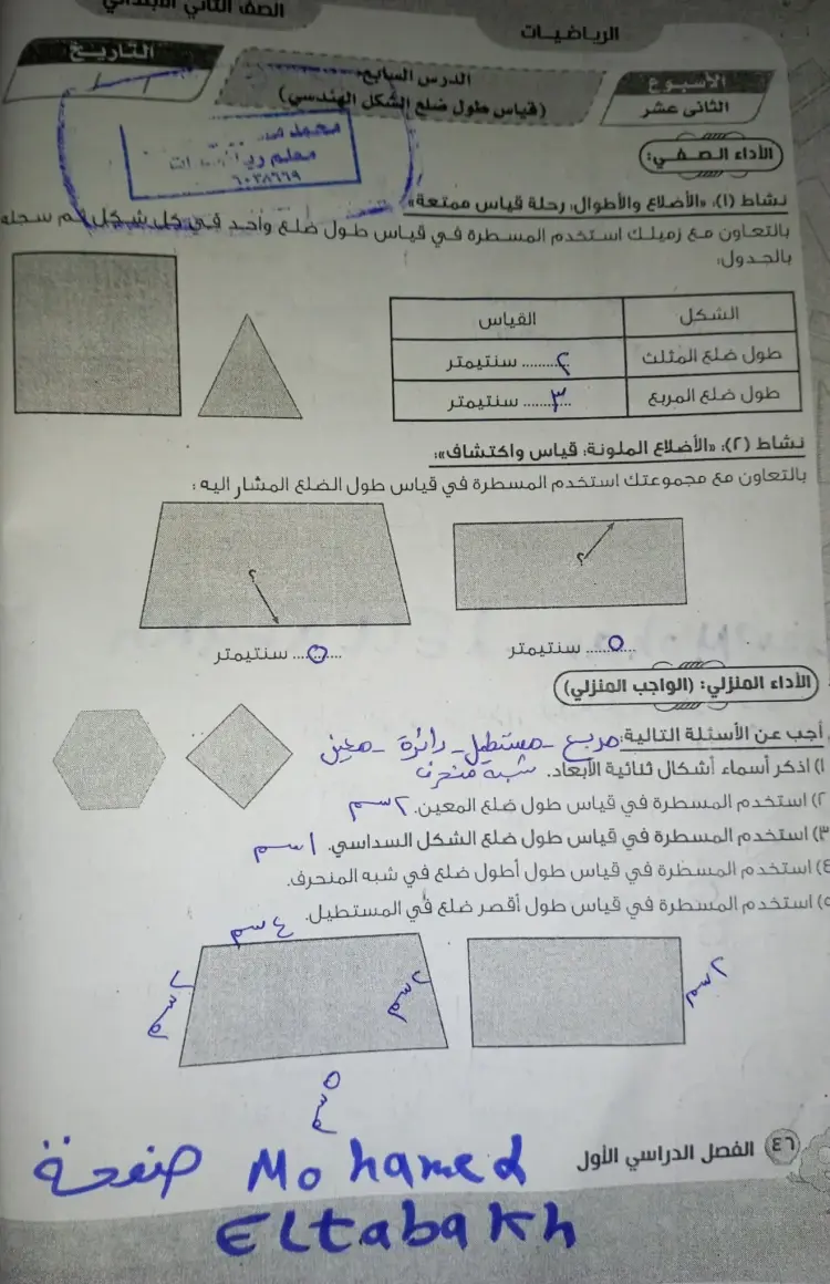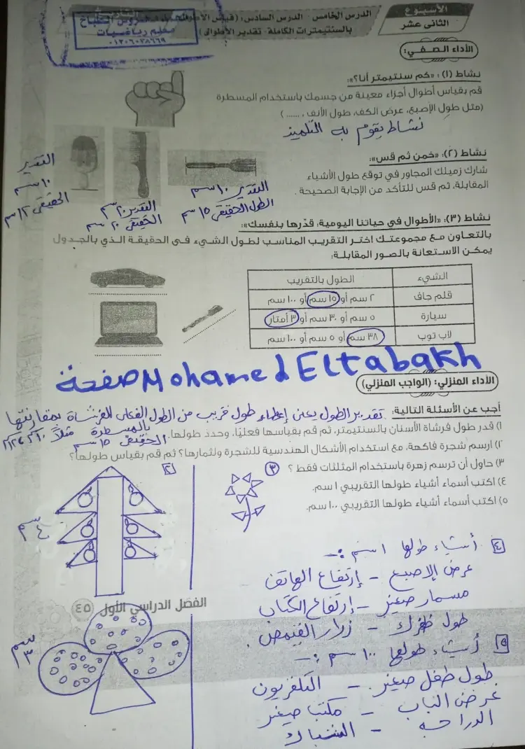 حل الأداء الصفي رياضيات ثانية ابتدائي الأسبوع الثالث عشر ترم أول 2026