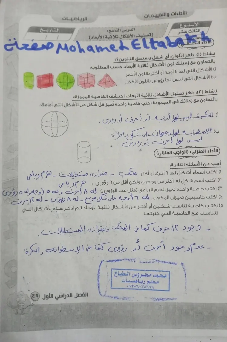 ويمكنك الإطلاع على باقي أسئلة وحل الأداء الصفي وواجب وتقييم الأسبوع الثالث عشر رياضيات للصف الثاني الابتدائي ترم أول 2026 من خلال الصور التالية: