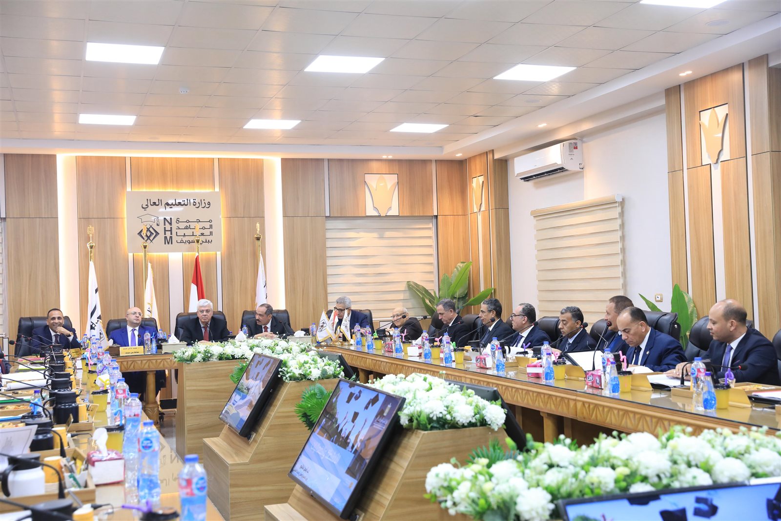 في بداية الاجتماع، أكد وزير التعليم العالي والبحث العلمي، استمرار انعقاد اجتماعات المجلس بالتناوب داخل المعاهد المختلفة، في تقليد جديد يستهدف التقييم الميداني لإمكاناتها وأدائها، وتقييم قدراتها المادية والبشرية، وتعزيز دورها الأكاديمي، مثمنًا دور المعاهد الحيوي في منظومة التعليم العالي، ومقدمًا الشكر للمهندس نادر نسيم رئيس مجلس إدارة مجمع المعاهد العليا ببني سويف، على استضافة اجتماع المجلس.