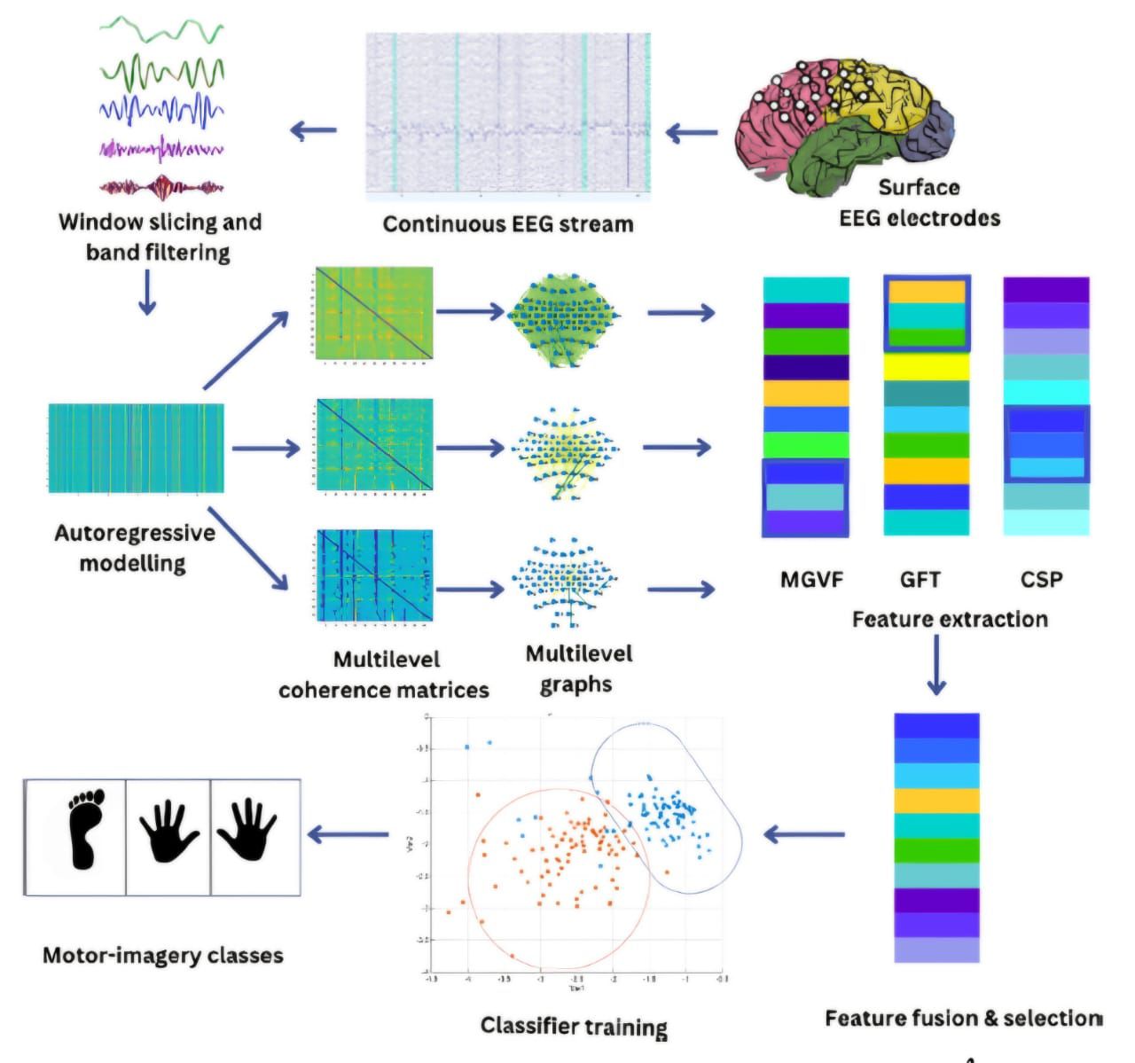 ويعتمد هذا الإنجاز على دمج نظريات رياضية متقدمة، من بينها نظرية الأشكال والمتسلسلات الزمنية والتحويلات المتقطعة، مع تقنيات الشبكات العصبية الاصطناعية، بما يتيح للحاسوب تحليل وفهم الإشارات العصبية الصادرة من الدماغ وتحويلها إلى إشارات تحكم دقيقة يمكن توظيفها في التحكم بالأجهزة المختلفة عن بُعد.