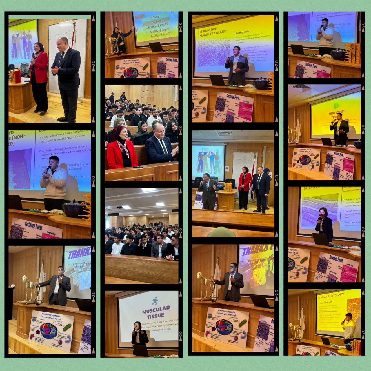 وشهدت الفعالية تقسيم الطلاب إلى فرق عمل، حيث قامت كل مجموعة بإعداد وتقديم عرض علمي (Presentation) للجزء المخصص لها، أعقبه نقاش أكاديمي منظم، عكس مستوى الاستيعاب العلمي لدى الطلاب، وقدرتهم على الربط بين الجوانب النظرية والتطبيقية لعلم الأنسجة.