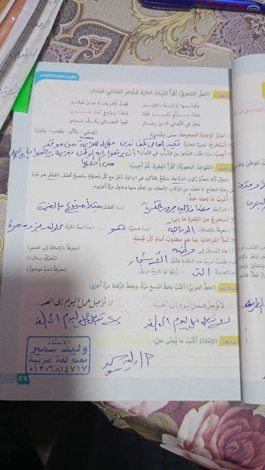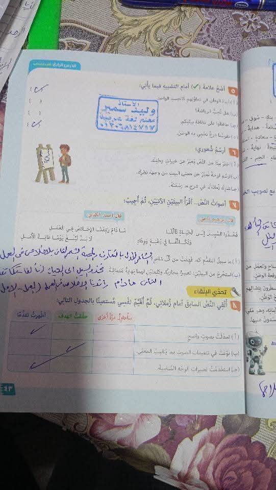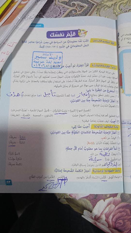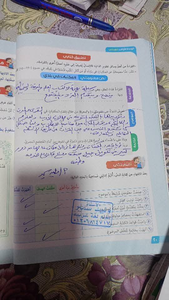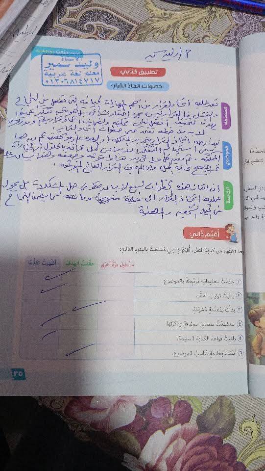 - 5 درجات لكراسة الواجب.