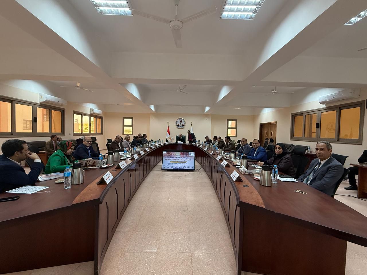 عقد مجلس جامعة سوهاج الأهلية جلسته الخامسة برئاسة الدكتور حسان النعماني رئيس الجامعة، وبحضور الدكتور حسين عبدالحافظ نائب رئيس الجامعة لشؤون الاكاديمية وعمداء كليات الجامعة.