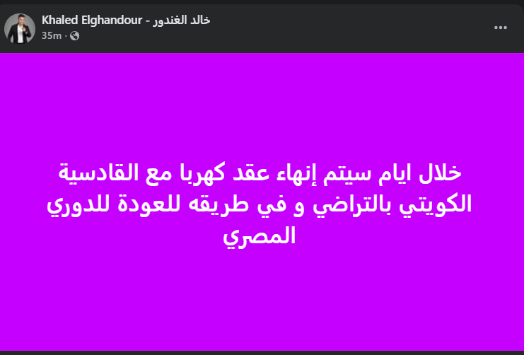 أكد الإعلامي خالد الغندور، أن عقد محمود عبدالمنعم كهربا مع نادي القادسية الكويتي سينتهي بالتراضي خلال أيام قليلة، وأن اللاعب في طريقه للعودة إلى الدوري المصري الممتاز.