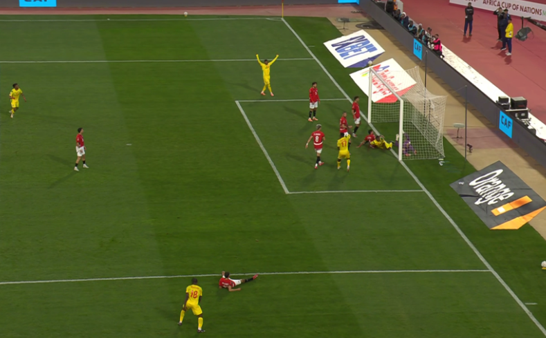 وحاول محمد الشناوي الحفاظ على الكرة وعدم الوصول للمرمى بعد تغيير الاتجاه، ولكن تدخل المرمى وتسجيل التعادل قبل النهاية بـ 8 دقائق.