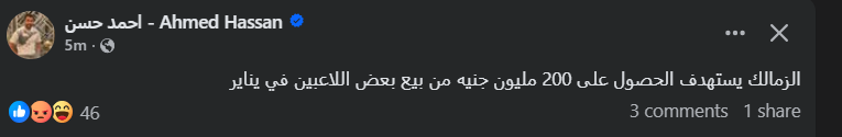 كشف أحمد حسن، نجم منتخب مصر السابق، أن نادي الزمالك يخطط للحصول على مبلغ يصل إلى 200 مليون جنيه من خلال بيع عدد من لاعبيه خلال فترة الانتقالات الشتوية الجارية في شهر يناير.