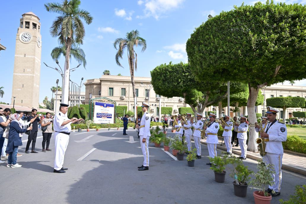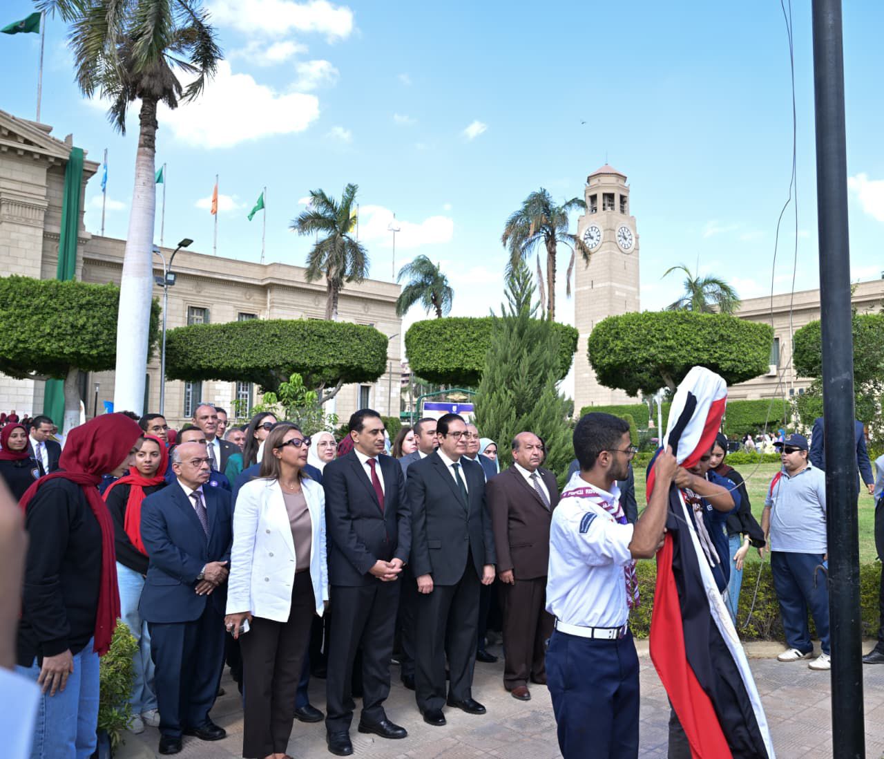 شهد الدكتور محمد سامي عبدالصادق رئيس جامعة القاهرة، بحضور نواب رئيس الجامعة وعمداء الكليات وأعضاء هيئة التدريس وجمع غفير من الطلاب، تحية العلم أمام قبة جامعة القاهرة، في اليوم الثاني من العام الدراسي الجديد 2025/2026، تلاها طابور عرض لحملة الأعلام وعزف النشيد الوطني على أنغام الموسيقى العسكرية.
