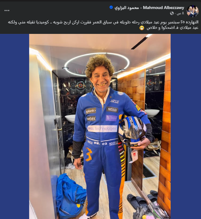 احتفل الفنان محمود البزاوي، بعيد ميلاده ال 62 على طريقته الخاصة، وهو مرتدي بدلة سباق، وذلك عبر صفحته على موقع التواصل الاجتماعي فيسبوك.